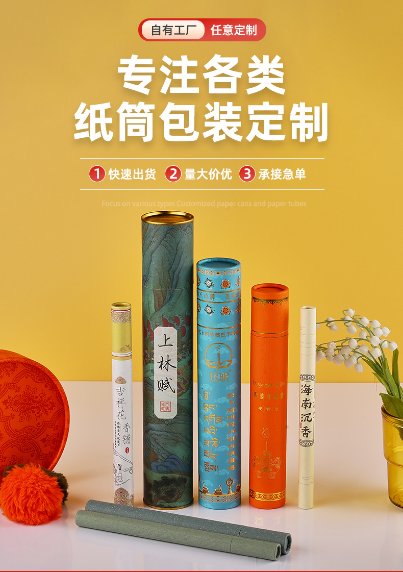 纸筒包装定制圆形牛皮纸管红酒线香海报字画对联空心圆筒纸罐定做