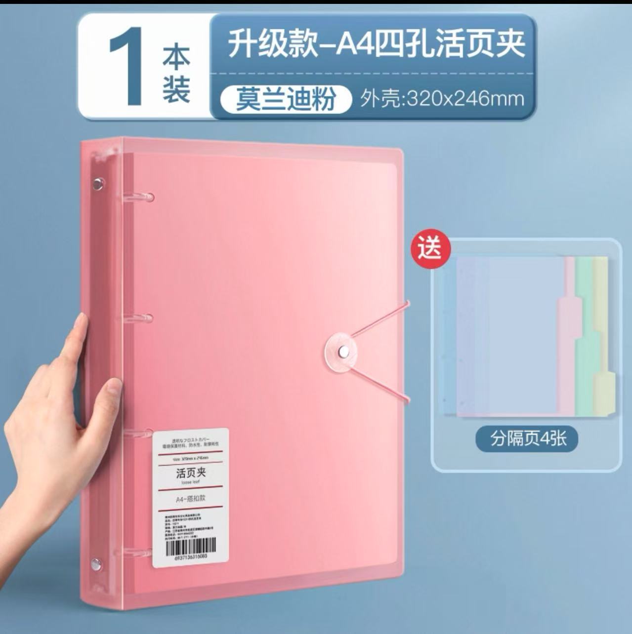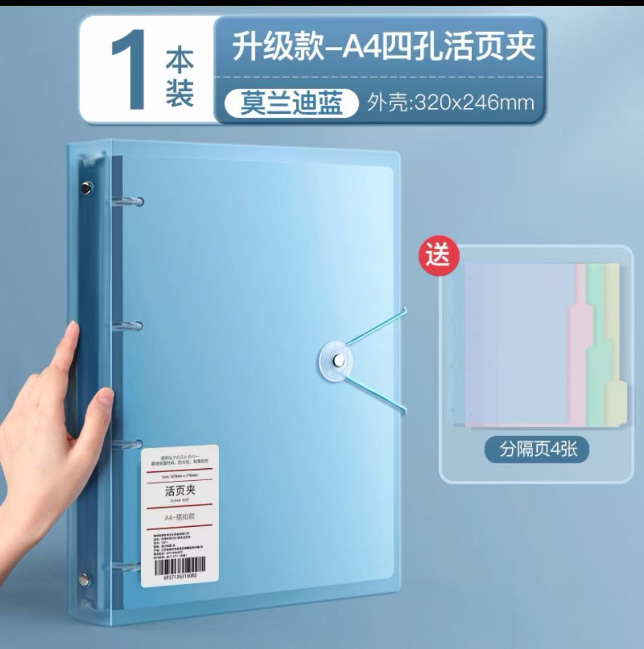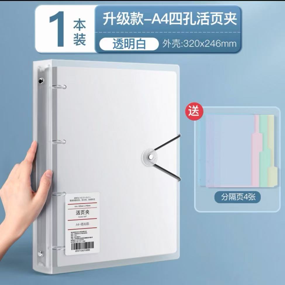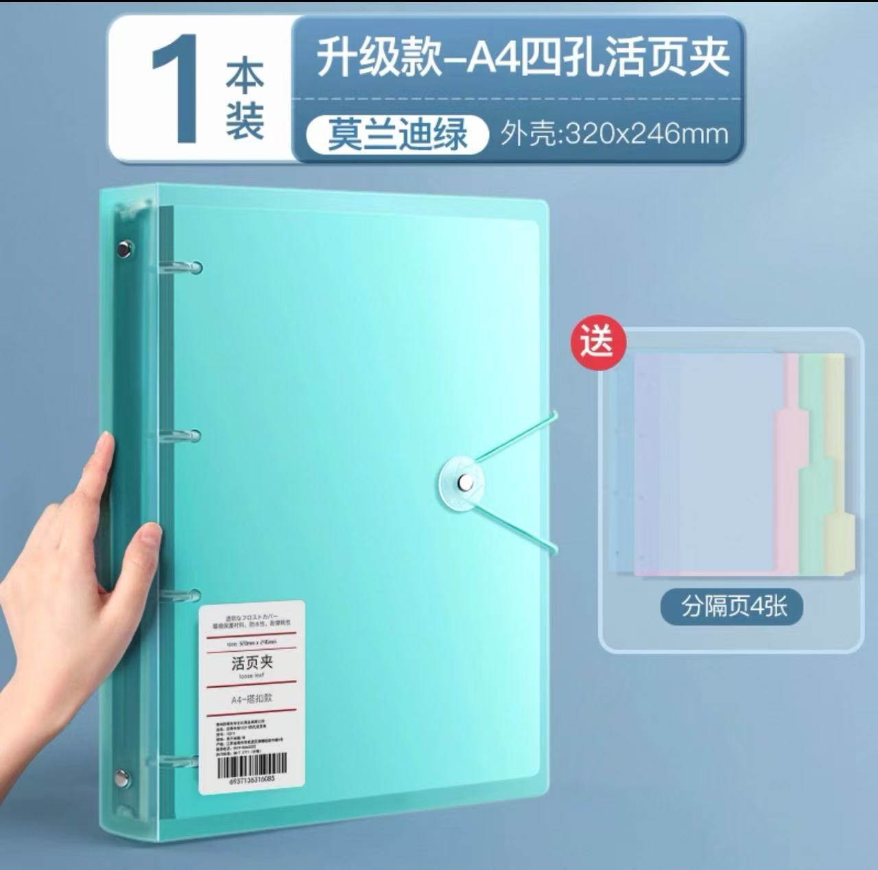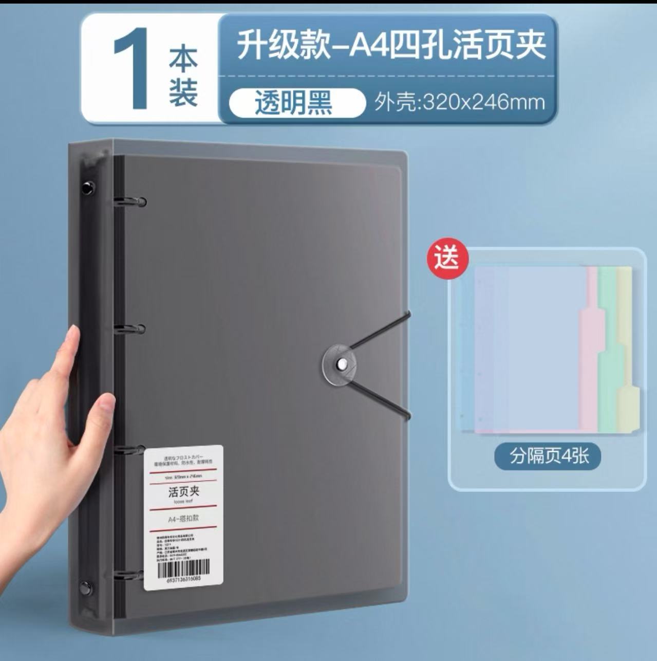 规格 4孔透明蓝-送4张分隔页,4孔透明粉-送4张分隔页,4孔透明黑-送4张分隔页,4孔透明白-送4张分隔页,4孔透明绿-送4张分隔页