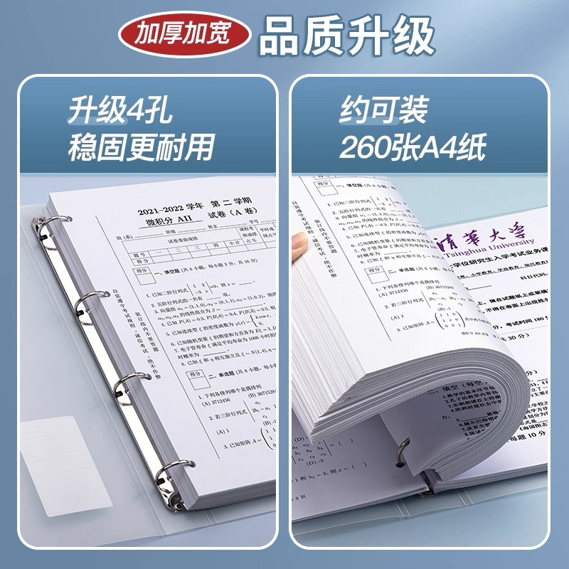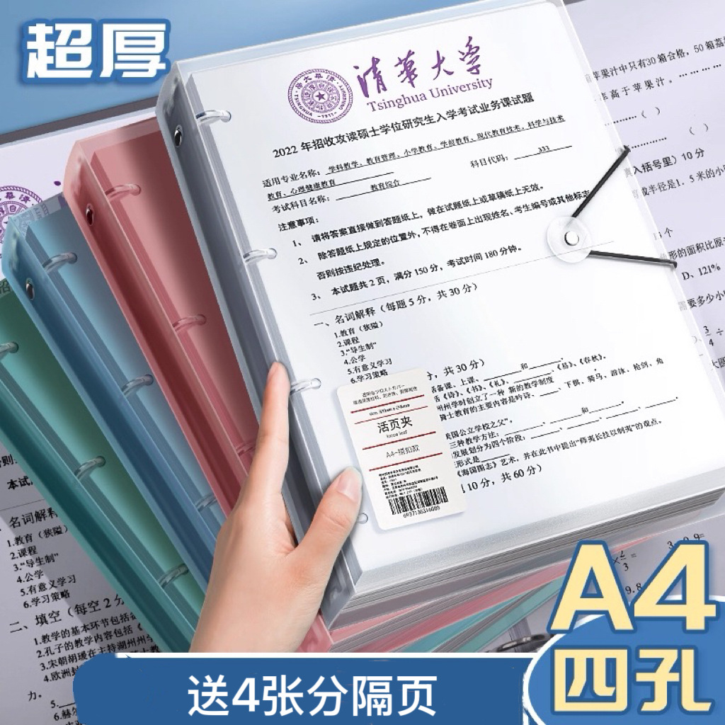 A4透明外壳四孔活页夹试卷收纳袋资料册家庭证件收纳孕检收纳册