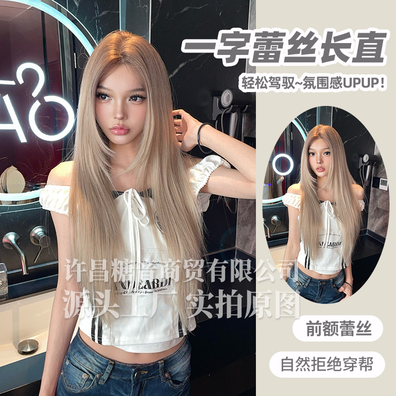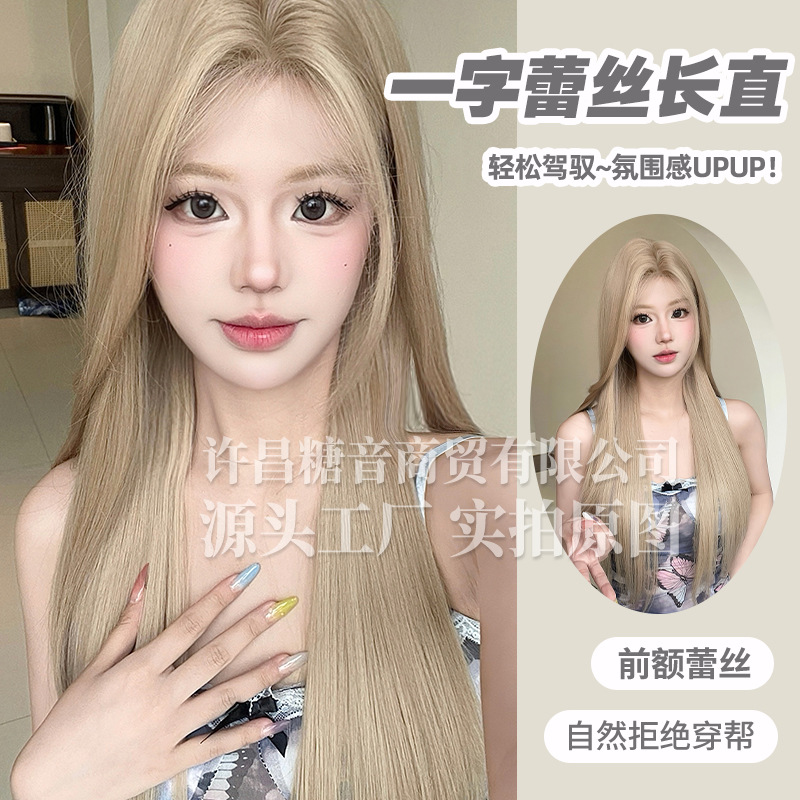 砂糖の音のかつらの新型の1字のレースの長いまっすぐな髪の全体のカバーの自然な丸い顔の韓国式のかつら