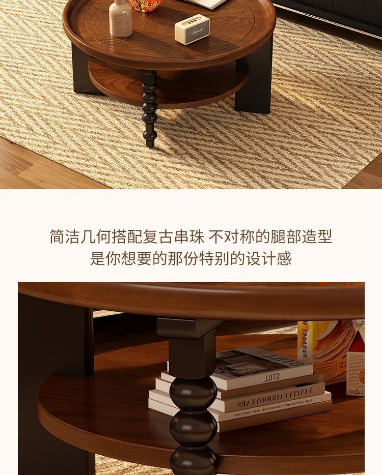 法式露比复古茶几实木圆形茶桌家用中式客厅小桌子古风小户型新款