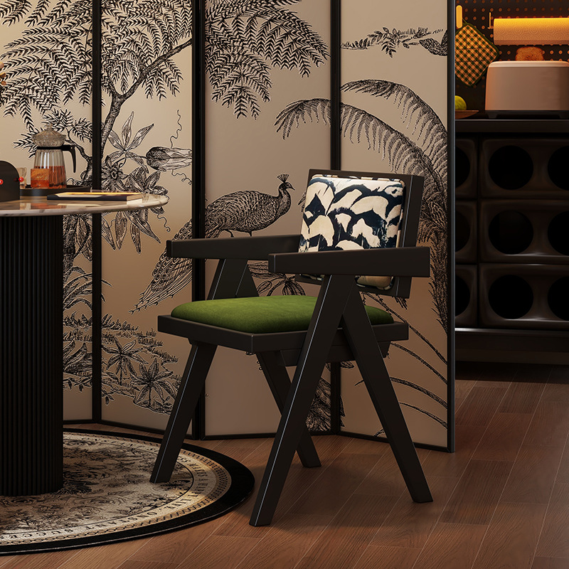 籐椅子無垢材ダイニングチェアホーム和風B&Bバルコニーレジャー籐椅子チャンディーガルソフトバックレストスツール