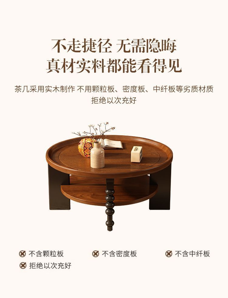法式实木茶几圆形茶桌小户型中式小桌子古风家用客厅美式复古新款
