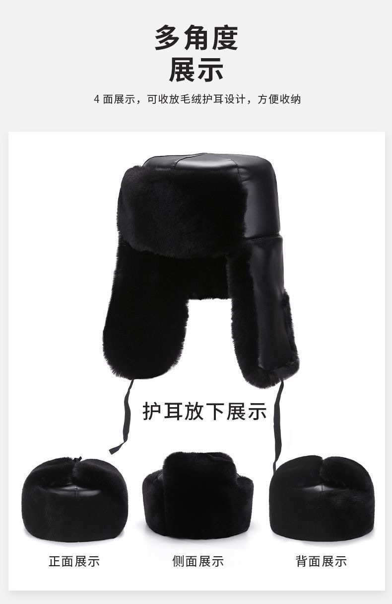 雷锋帽冬季加绒加厚东北防寒保暖骑行护耳帽老人棉帽子户外