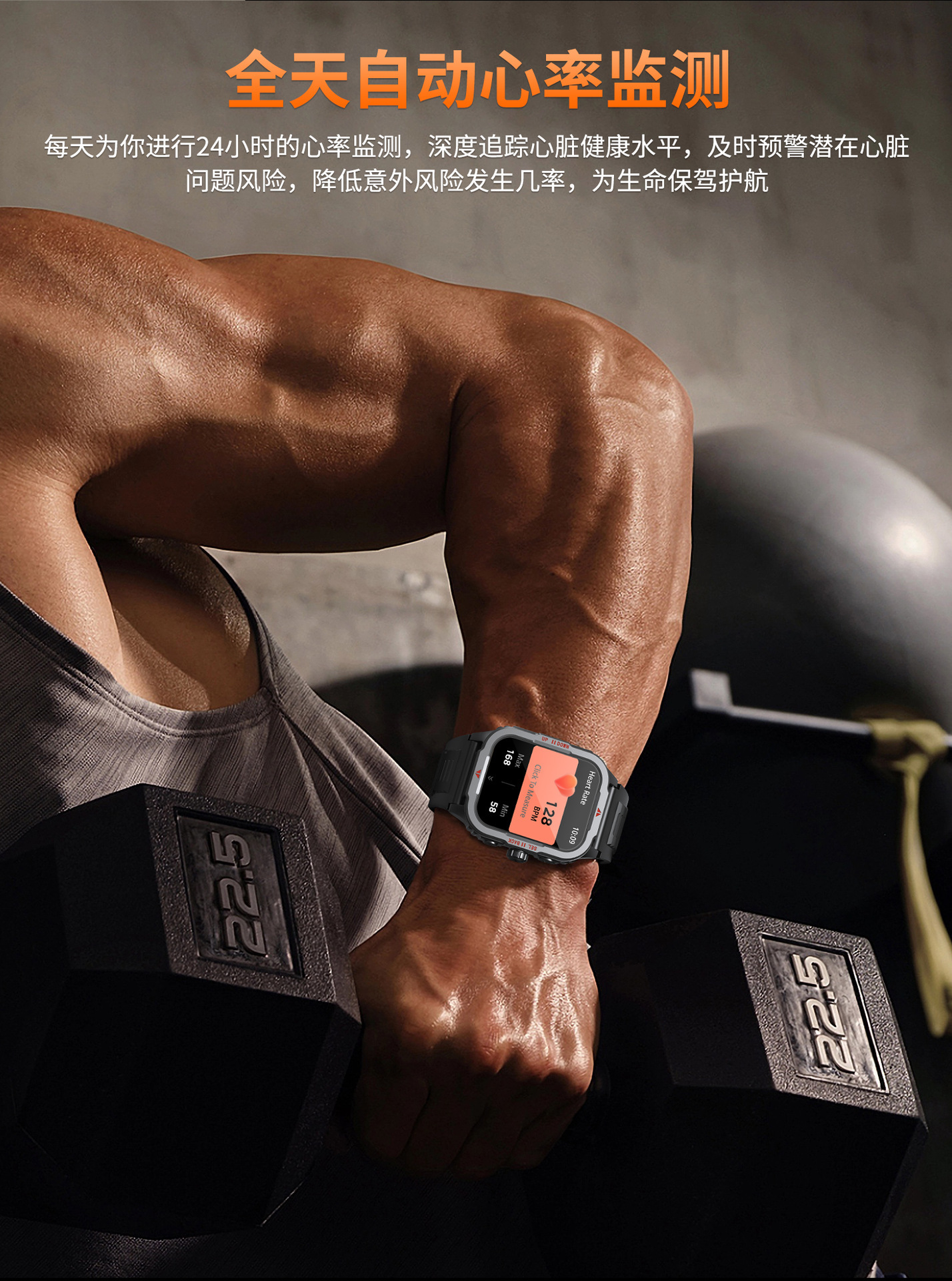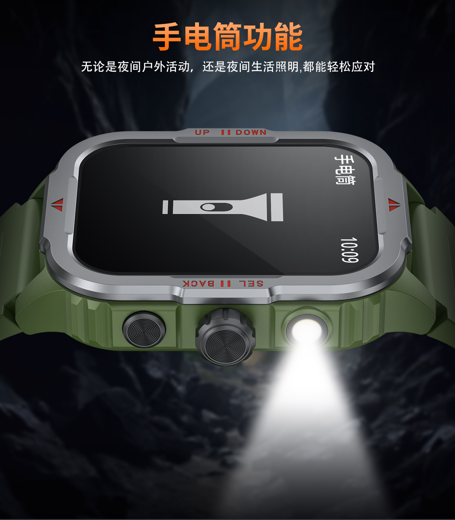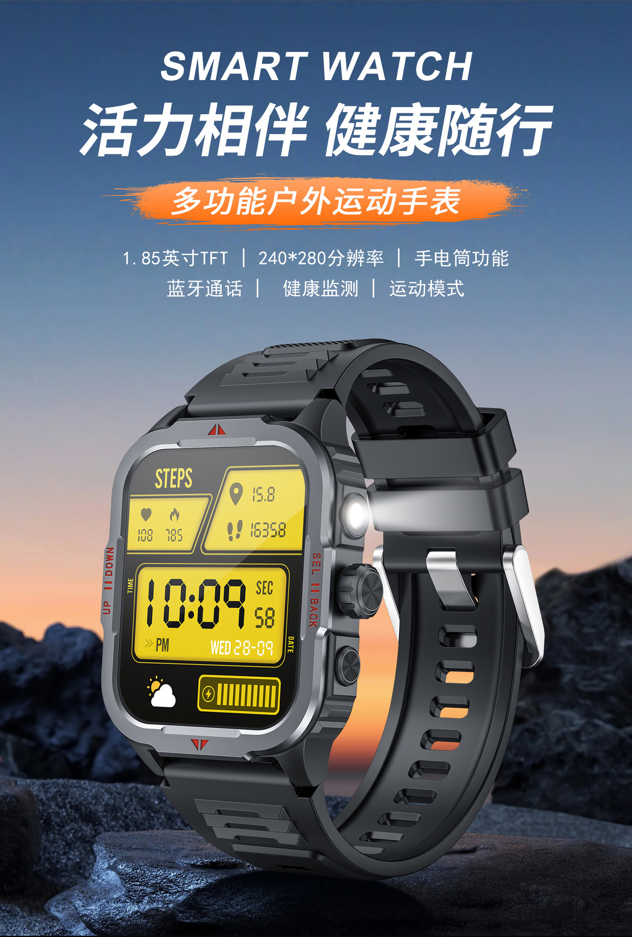 G129智能手表蓝牙通话户外三防带LED心率血氧健康监测手电筒手表