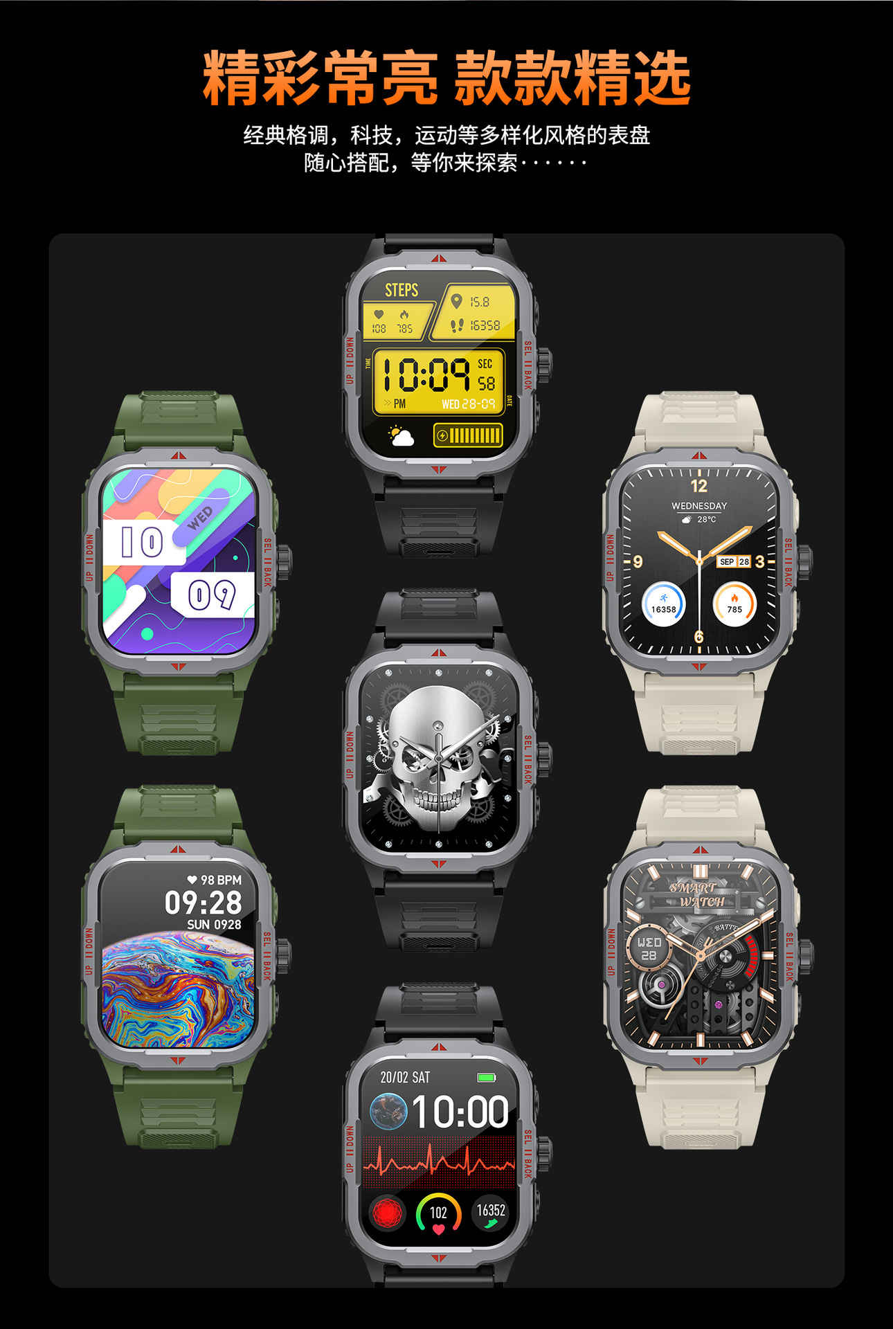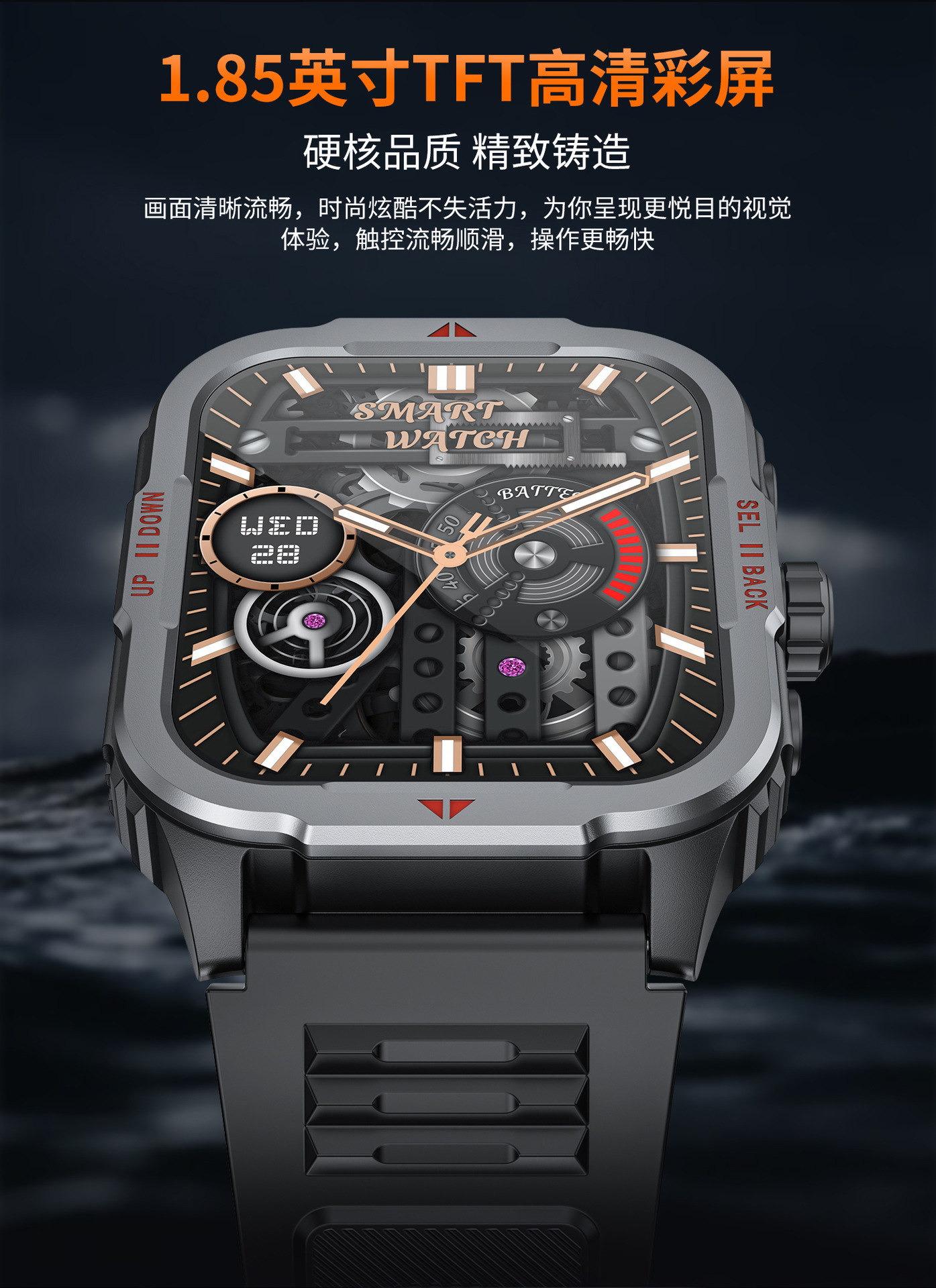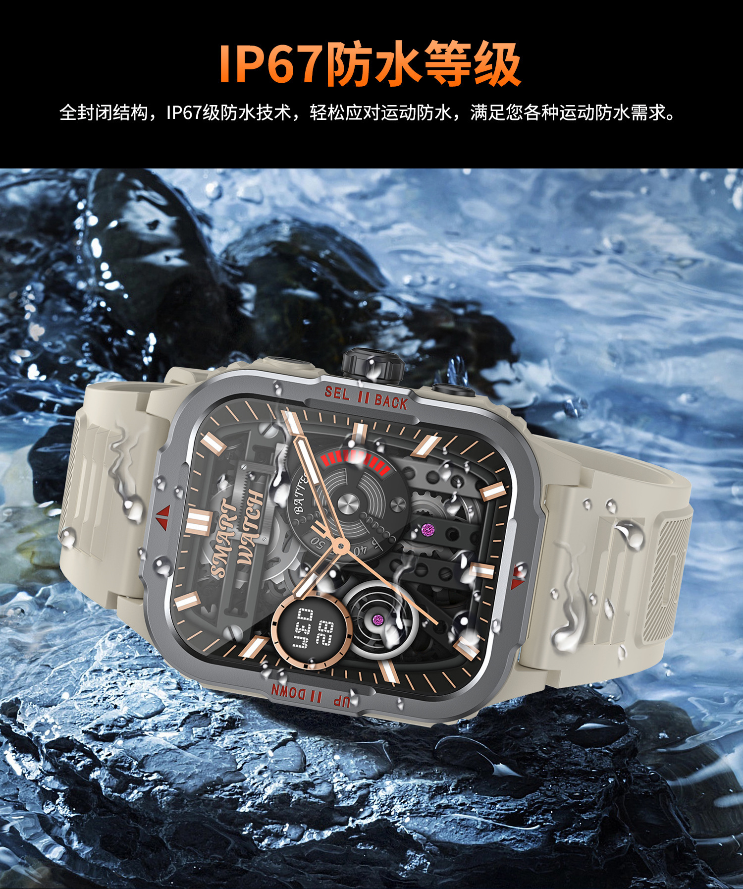 G129智能手表蓝牙通话户外三防带LED心率血氧健康监测手电筒手表