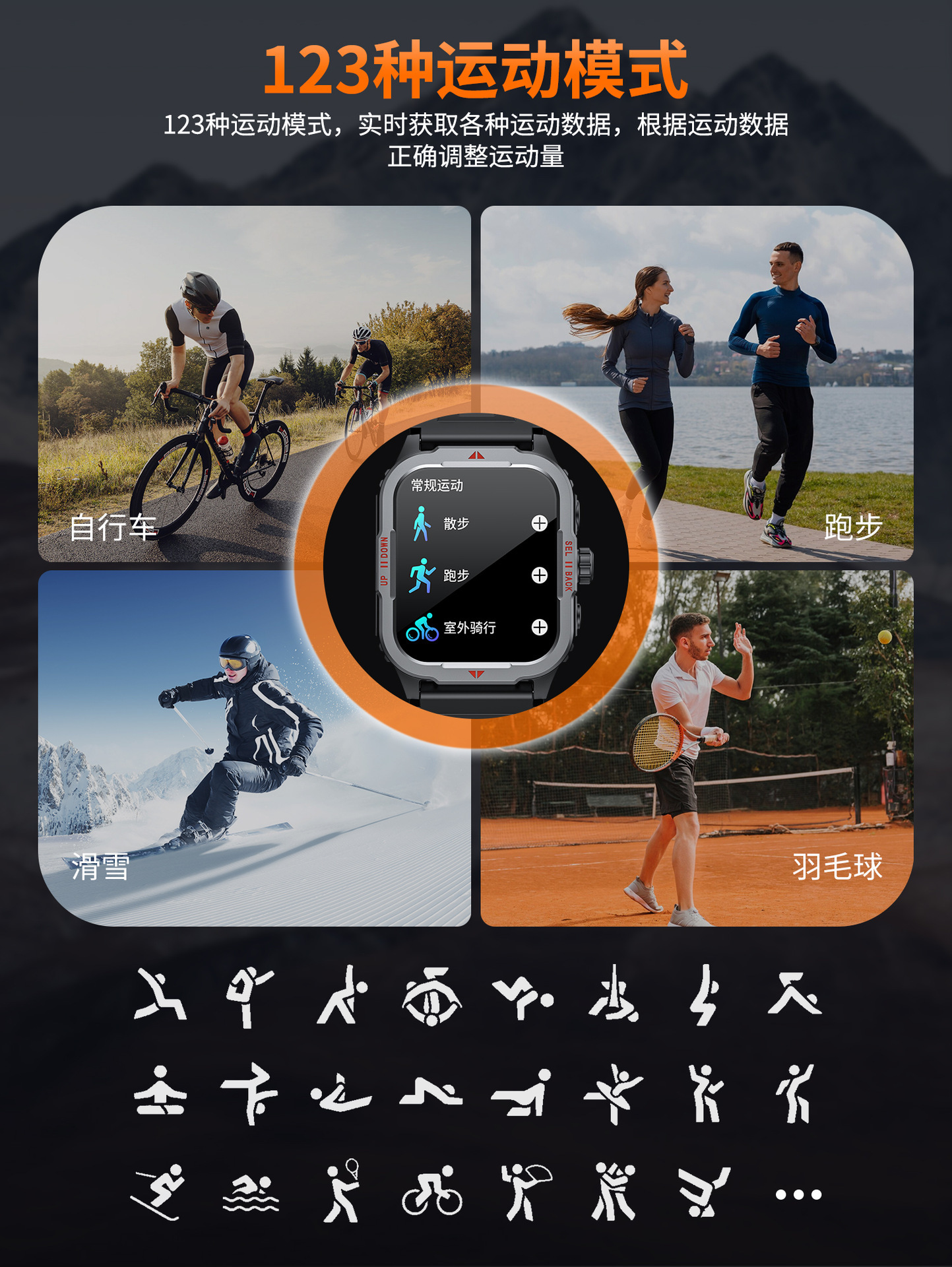 功能 防水,计步,心率监测,社交娱乐,蓝牙通话,智能提醒,遥控自拍,睡眠监测