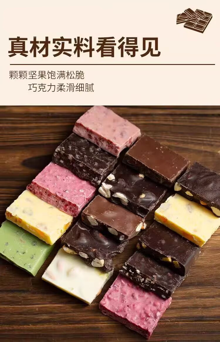 手工坚果网红巧克力板块果仁夹心巧克力锤休闲解馋零食混合装群木