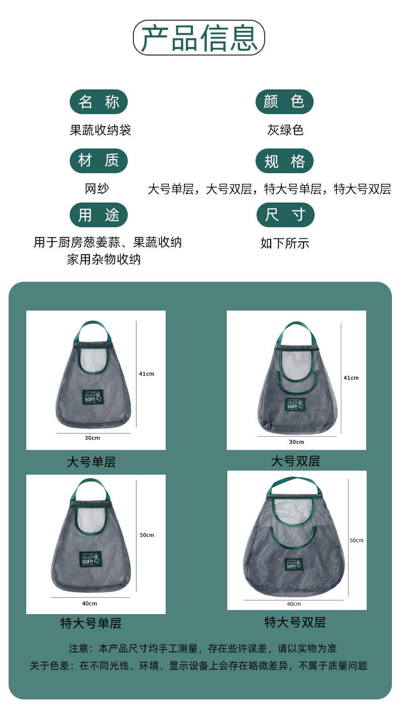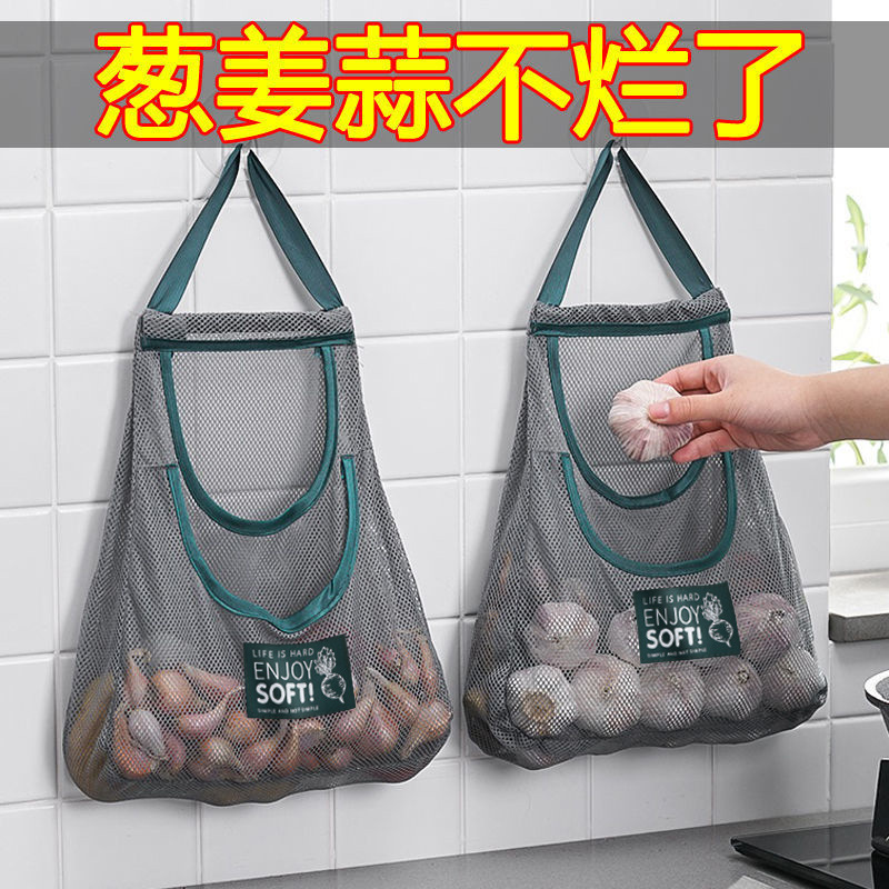 果蔬收纳网袋厨房收纳袋挂袋墙挂式大蒜生姜收纳装蒜网兜储物袋子