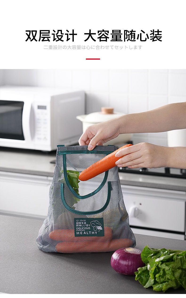 台所の多機能果物と野菜の袋を掛けます。