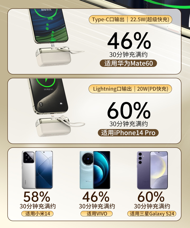PSE认证22.5迷你胶囊超级快充电宝口红便携自带线礼品数显移动电