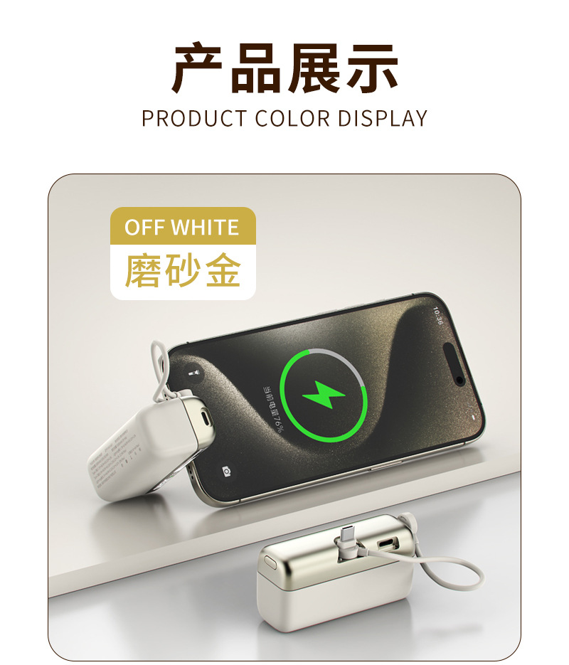 跨境礼品国标3C认证5000毫安胶囊充电宝自带线适用于苹果华为小米