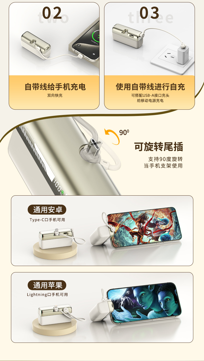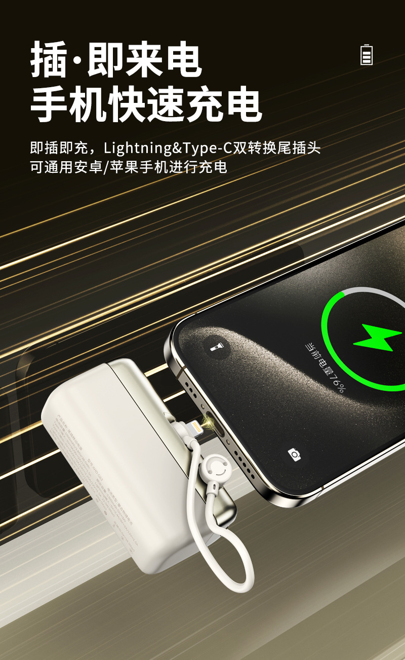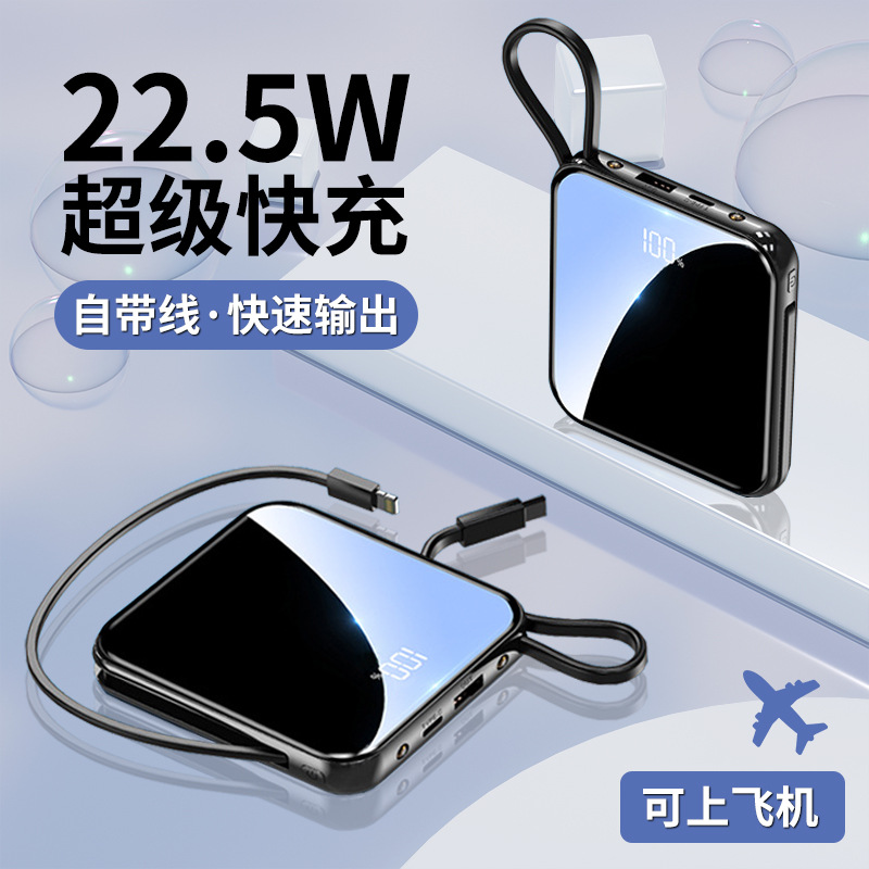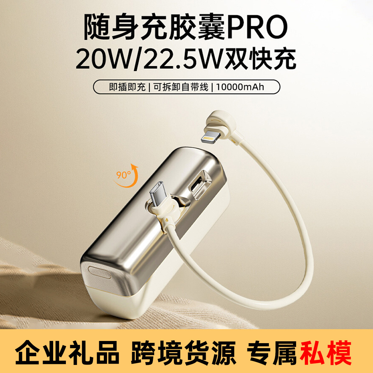 外贸充电宝3C认证可飞机胶囊自带线快充迷你小巧便携式礼品logo