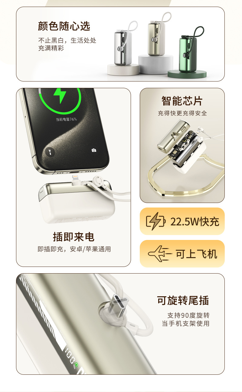 颜色 米白-【隐藏式22.5W可切换尾插+智能数显】口红大小,绿色-【隐藏式22.5W可切换尾插+智能数显】口红大小,黑色-【隐藏式22.5W可切换尾插+智能数显】口红大小