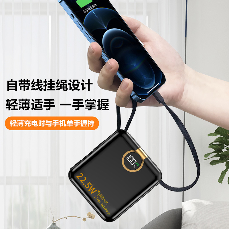 3C认证跨境22.5W快充胶囊充电宝尾插20000毫安自带线口袋移动电源