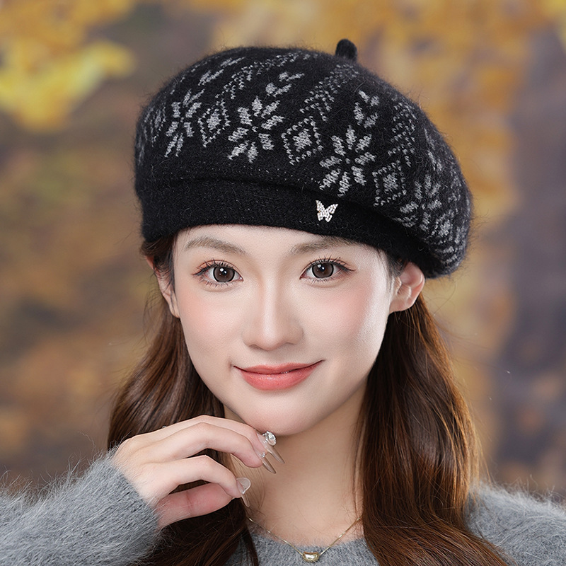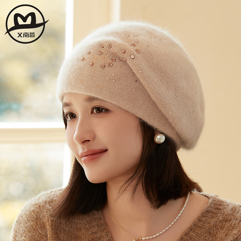 秋冬季冬季防寒保暖气质画家帽兔毛混纺贝雷帽子中老年防风毛线帽