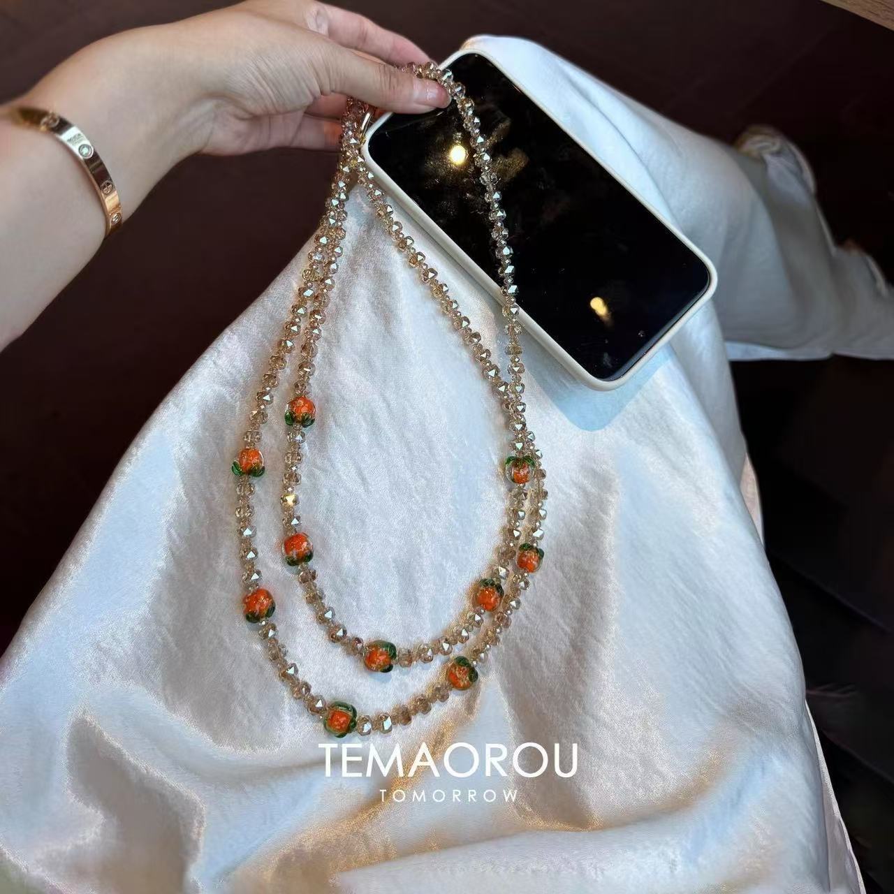【柿柿如意】爆闪串珠手机挂绳手机链斜挎可背带手机挂链串珠链条