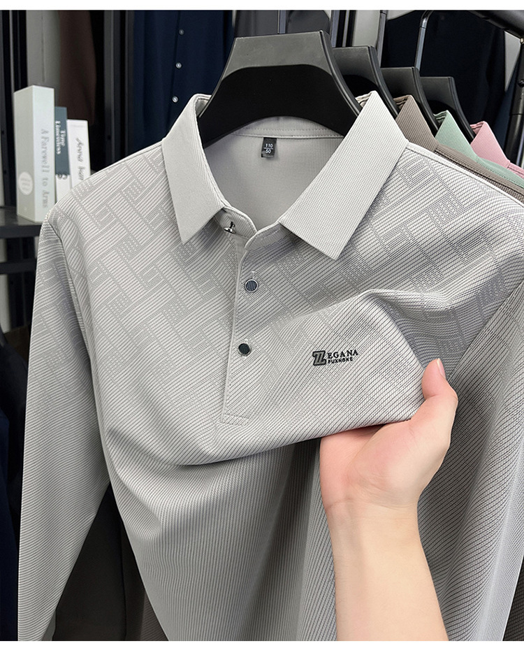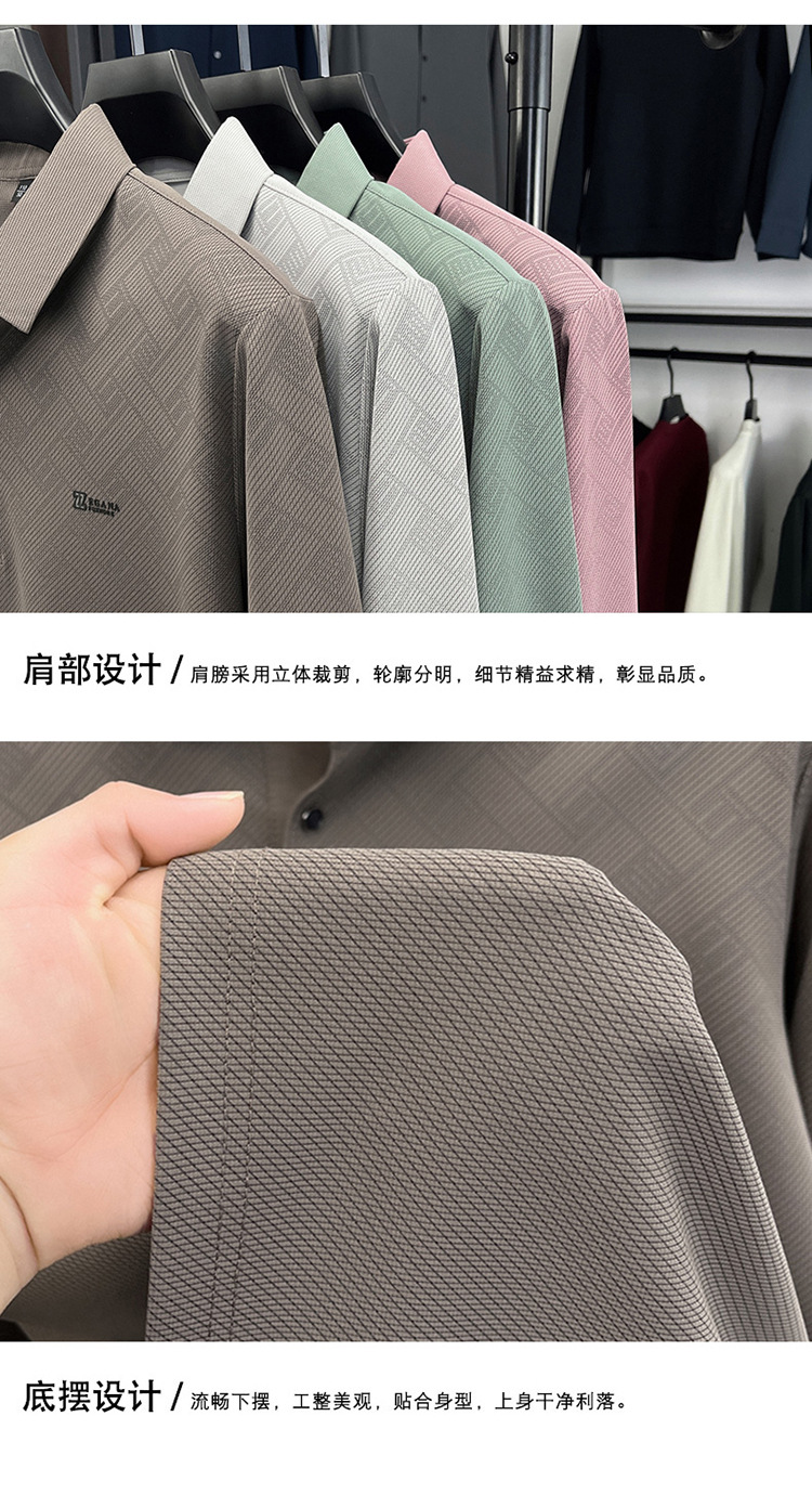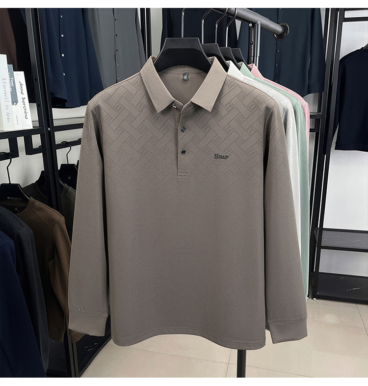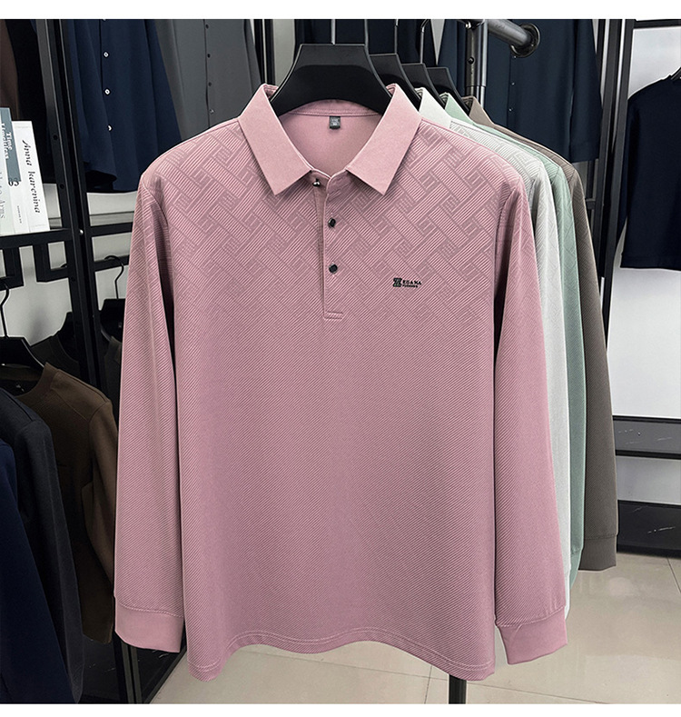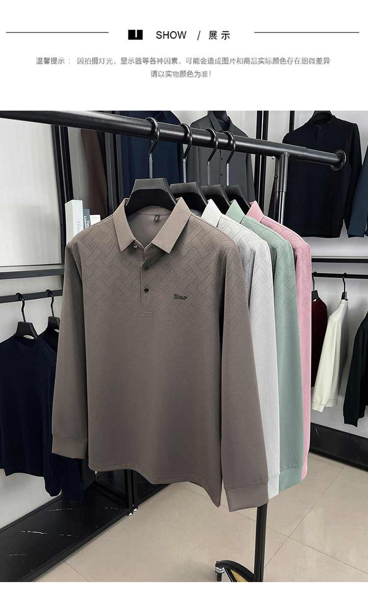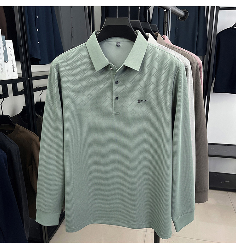 源头厂家秋季男士长袖T恤无痕印花POLO商务休闲中年爸爸翻领打底