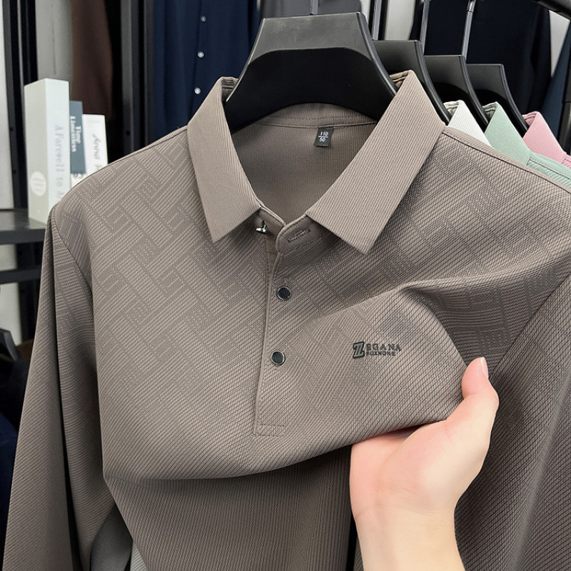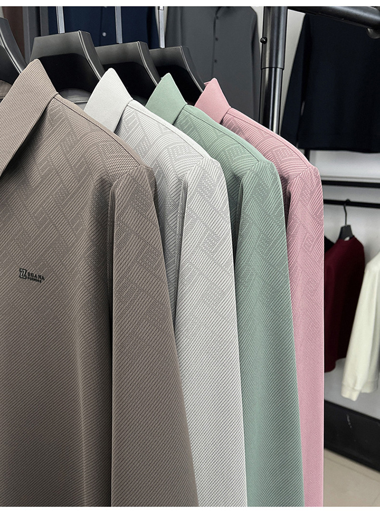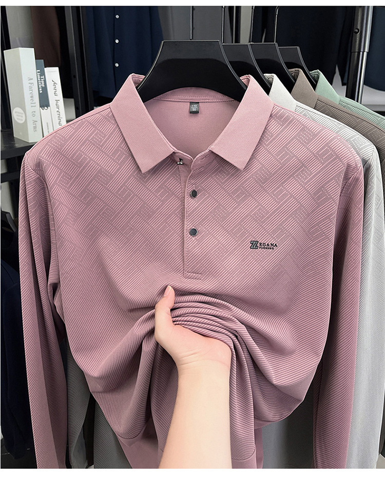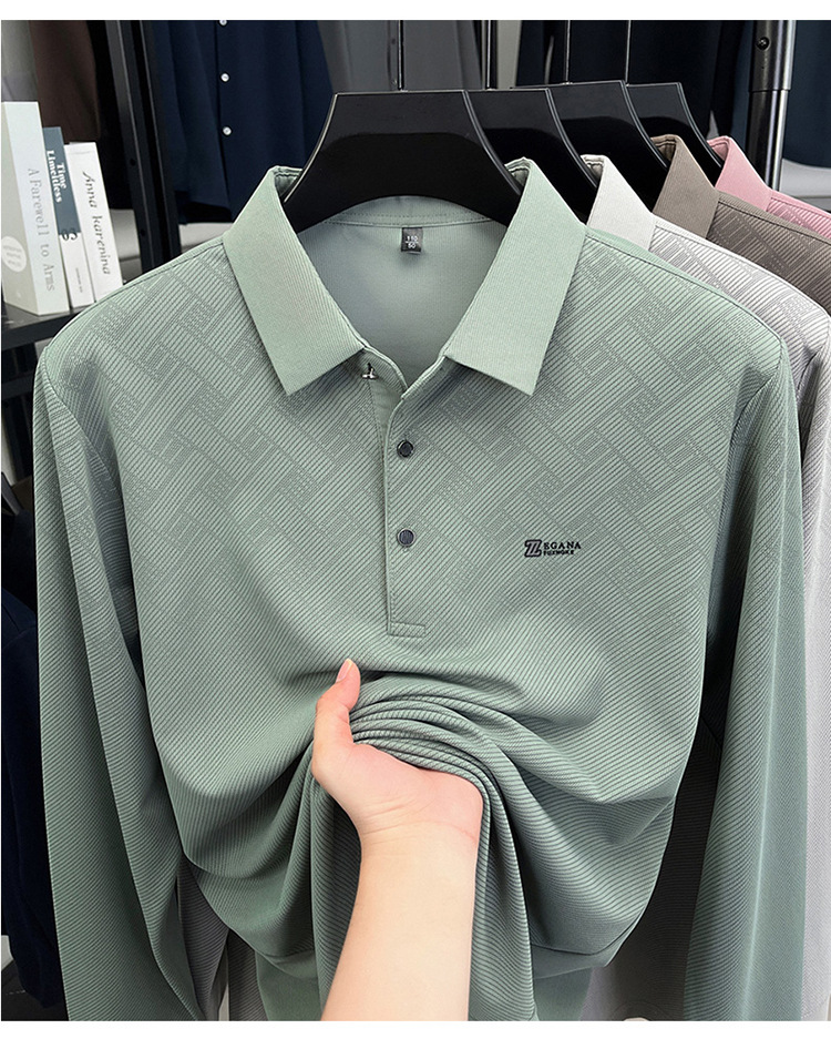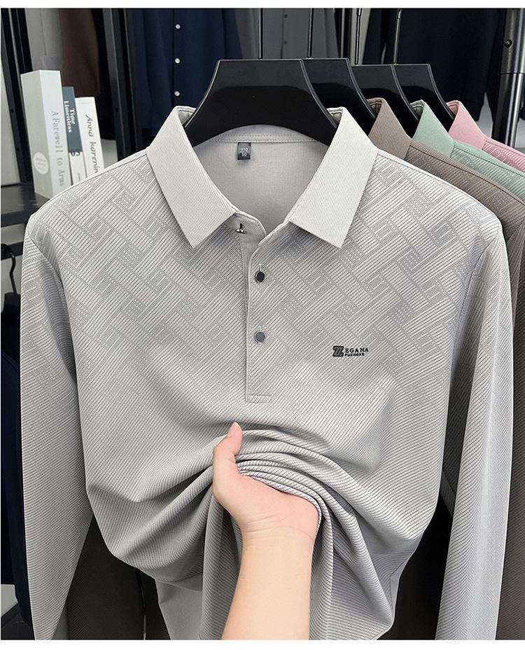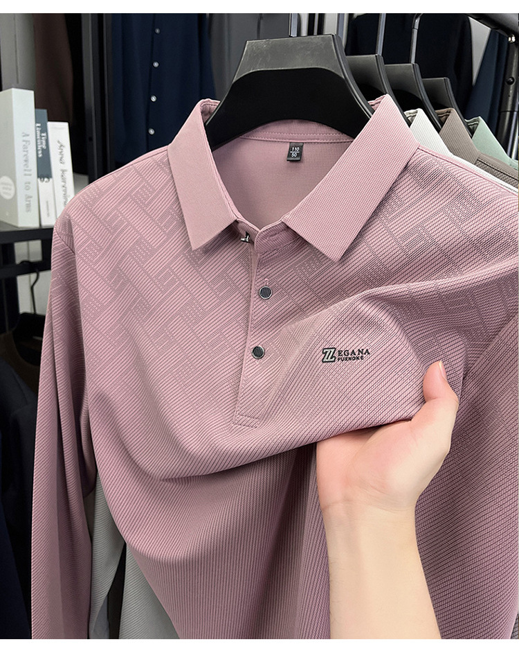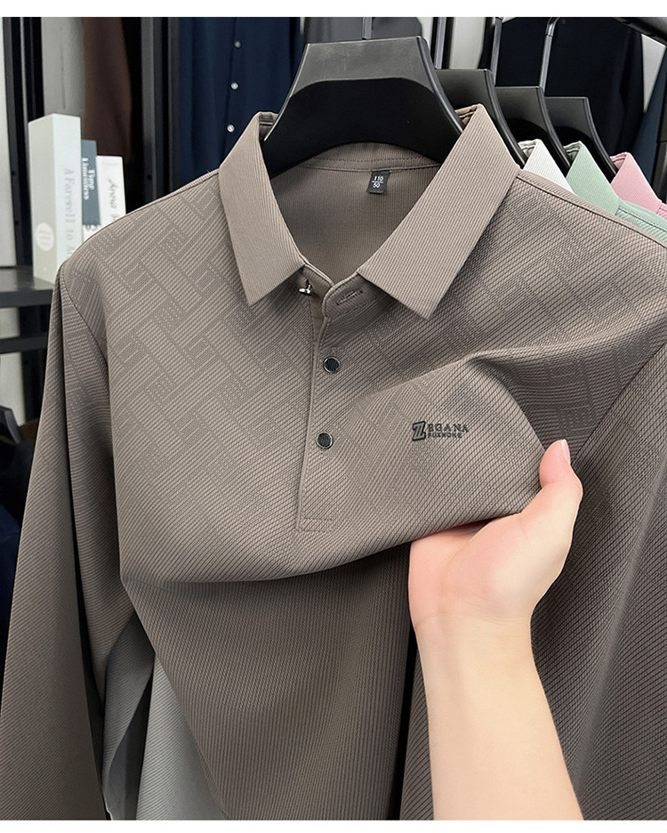 源头厂家秋季男士长袖T恤无痕印花POLO商务休闲中年爸爸翻领打底
