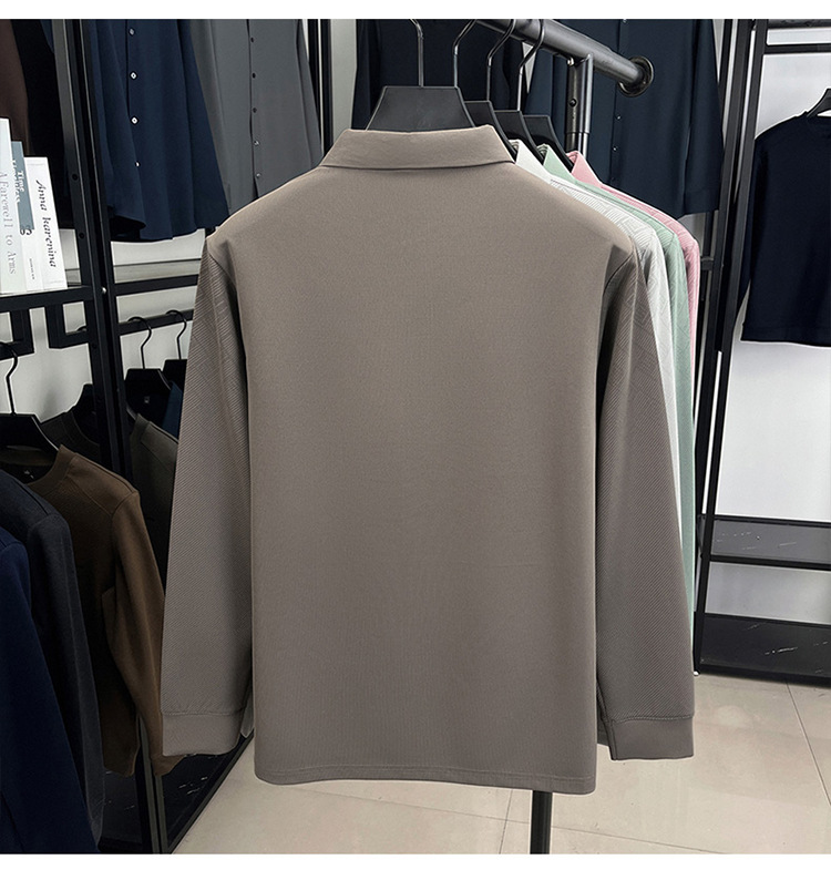 保罗男士长袖t恤翻领2025新款春秋中年爸爸翻领上衣体恤打底衫