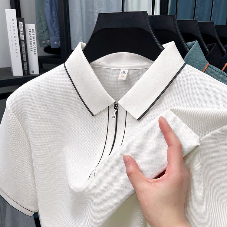 夏のメンズ Tシャツ半袖人気のメンズ半袖アイスシルク通気性ソリッドカラー多用途ポロシャツメンズファクトリーデリバリー