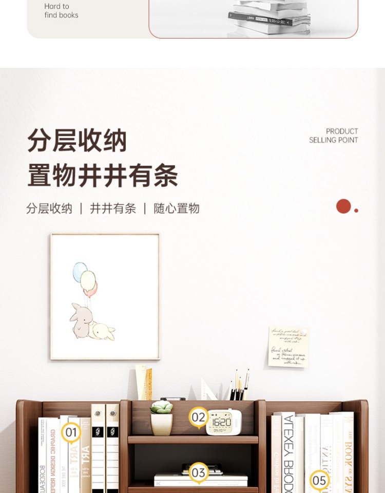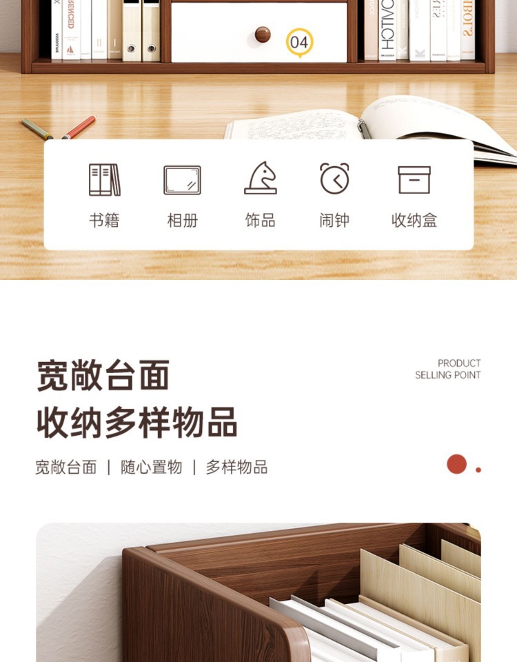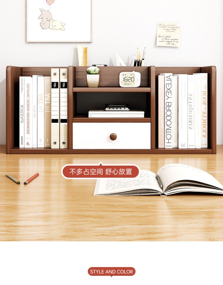 实木桌面书架宿舍桌上置物架办公室工位收纳神器书桌多层伸缩书柜