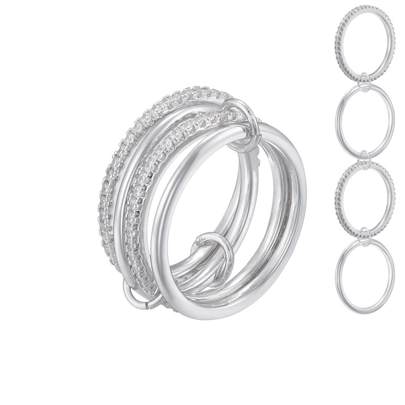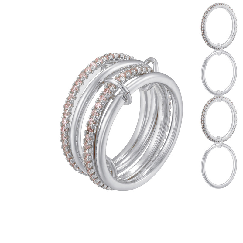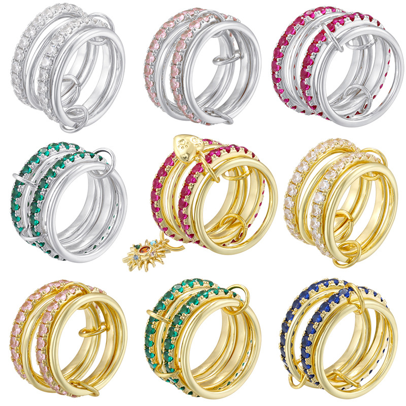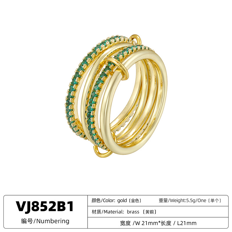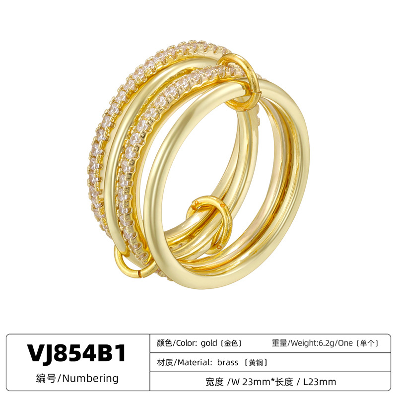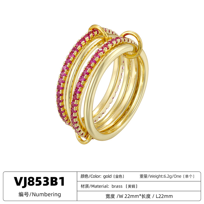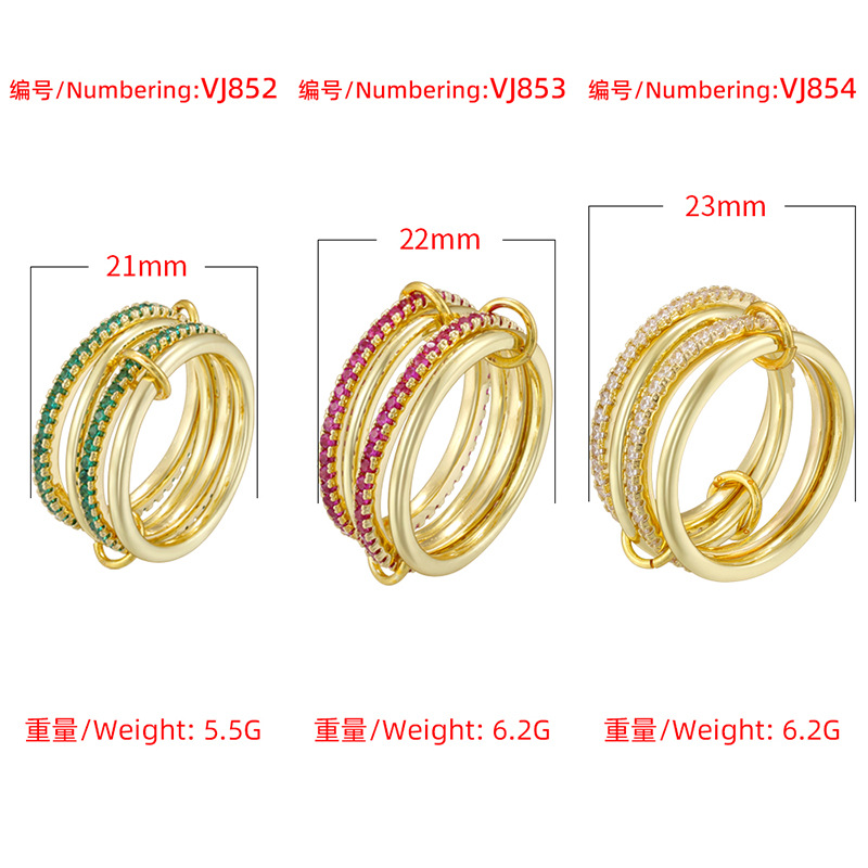 跨境热销铜镶彩钻6-8环环相扣戒指个性轻奢排钻圈圈指环VJ852-854