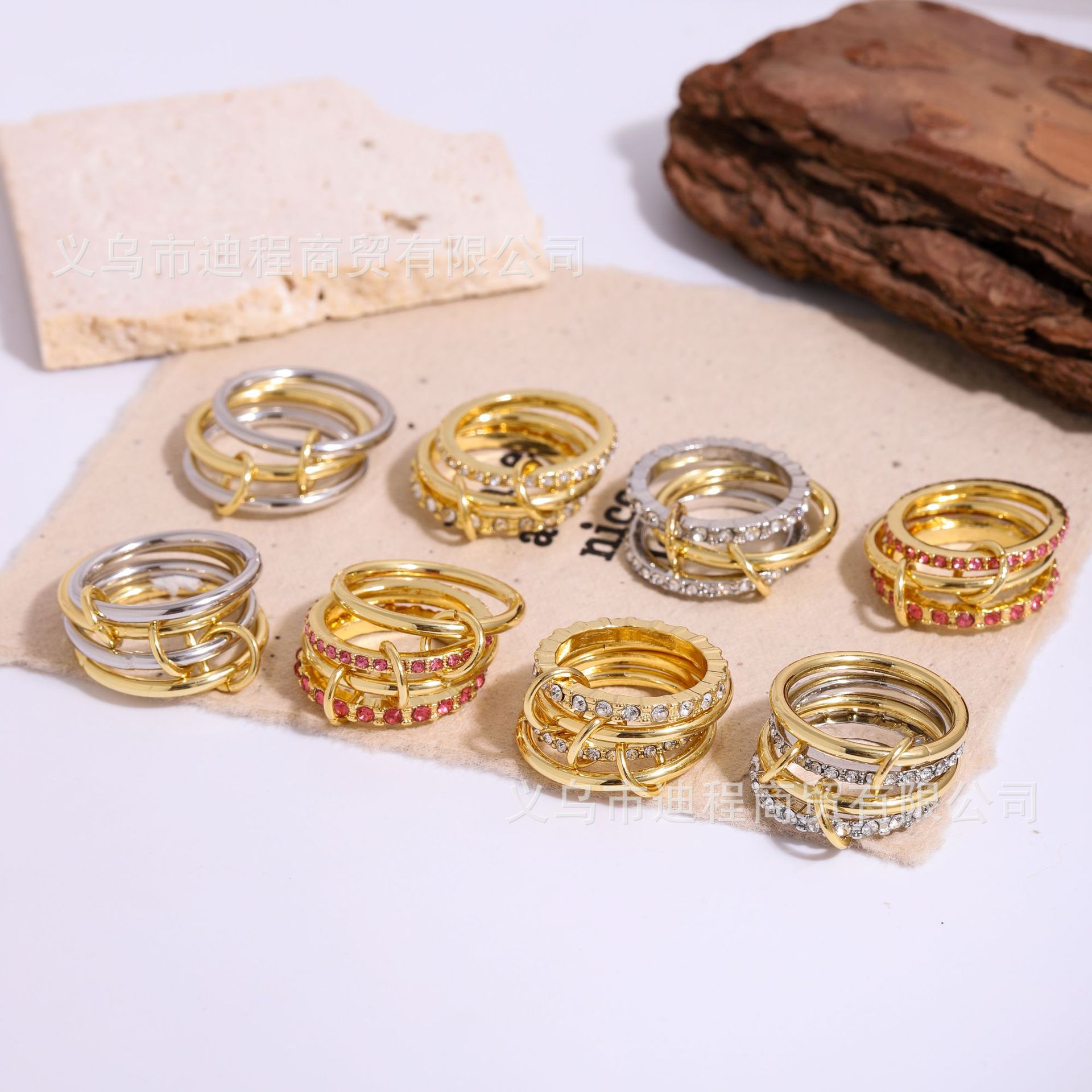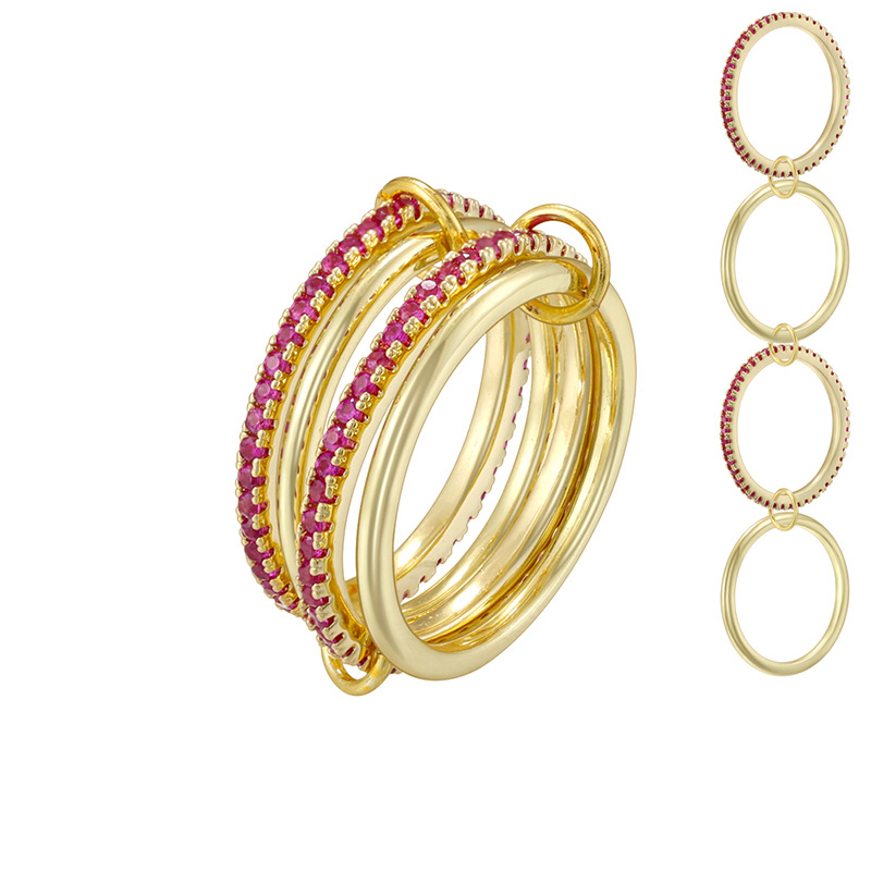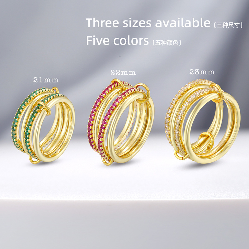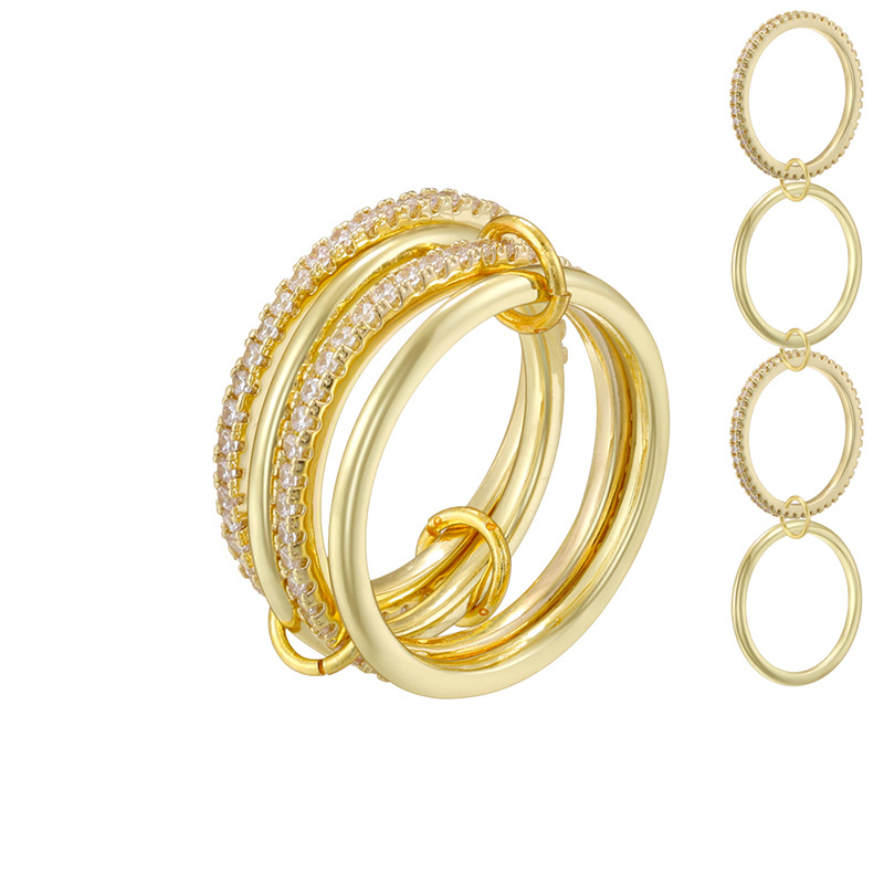 亚马逊热卖铜镀14k金环环相扣叠戴戒指微镶全手工抛光高端饰品