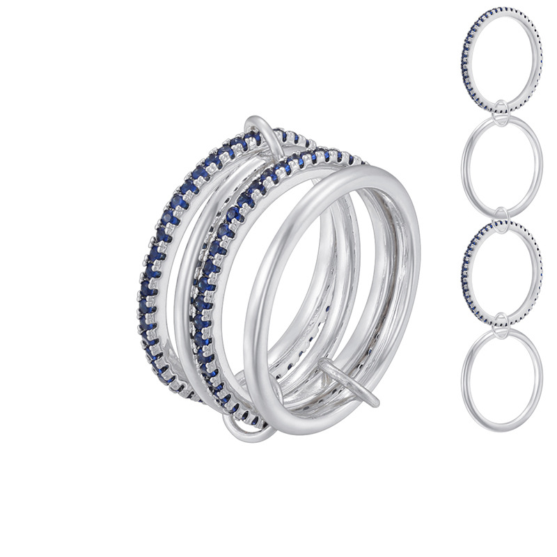 欧美外贸环环相扣满钻微镶锆石叠戴多层戒指跨境电商专供