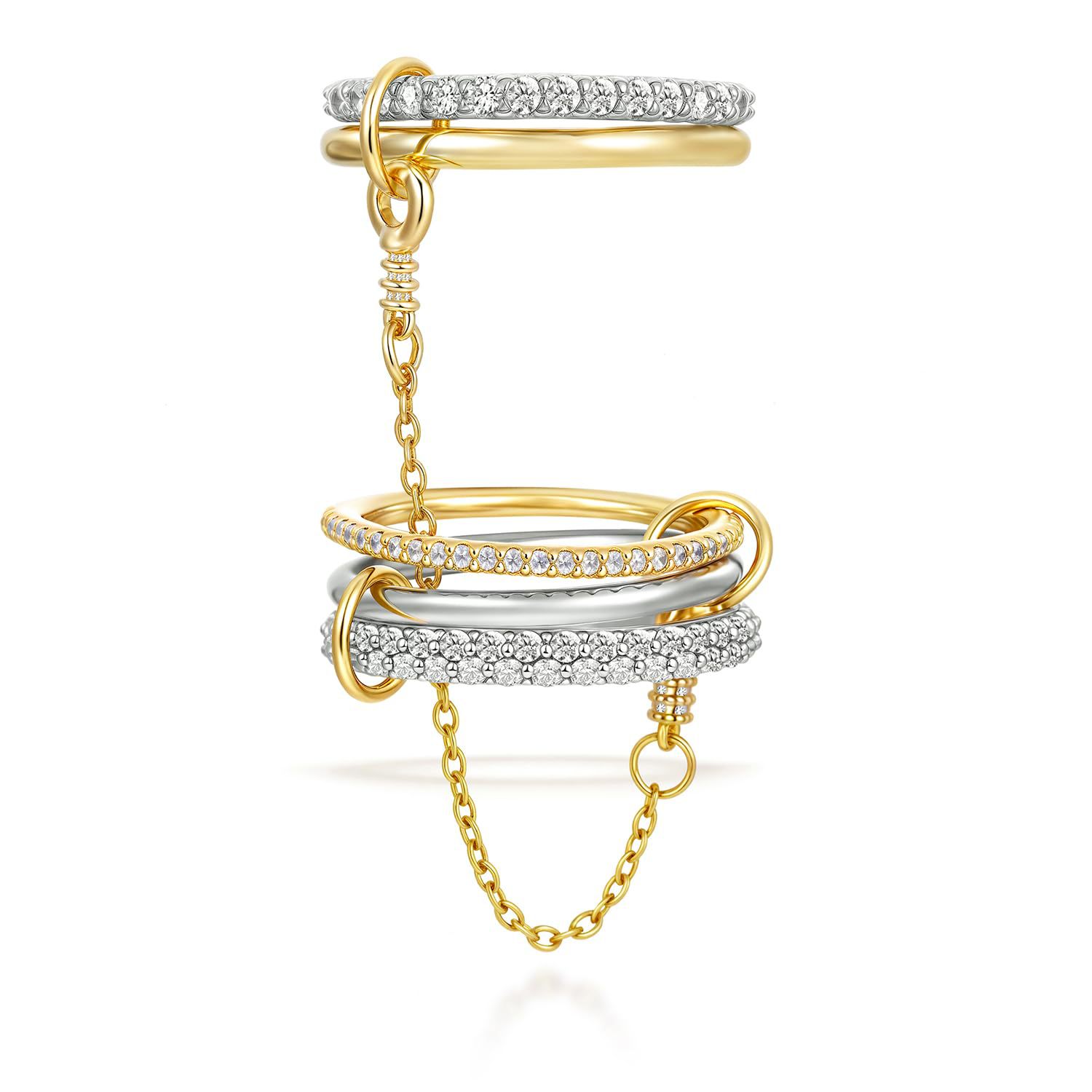 欧美跨境18K金银拼色锁链堆叠戒指 百搭叠戴轻奢亚马逊手饰
