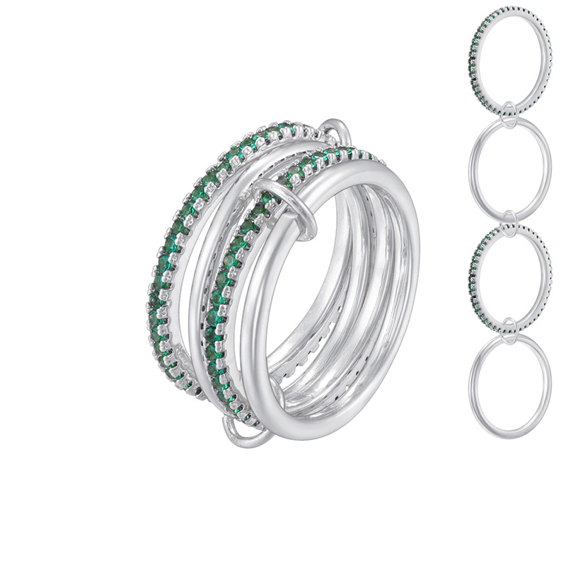 满钻铜镶锆石戒指多层叠戴不锈钢指环不掉色环环相扣跨境欧美爆款