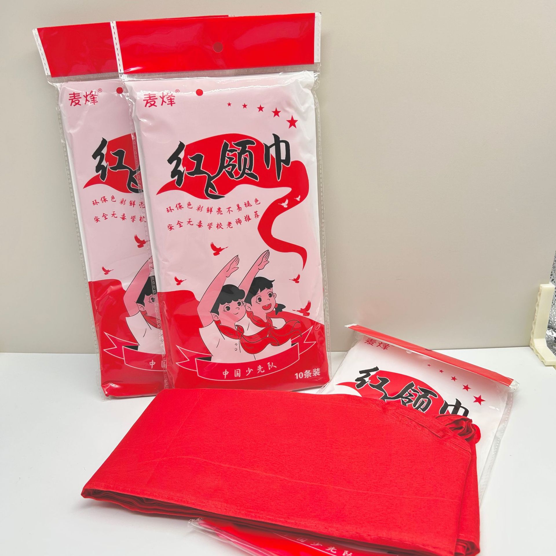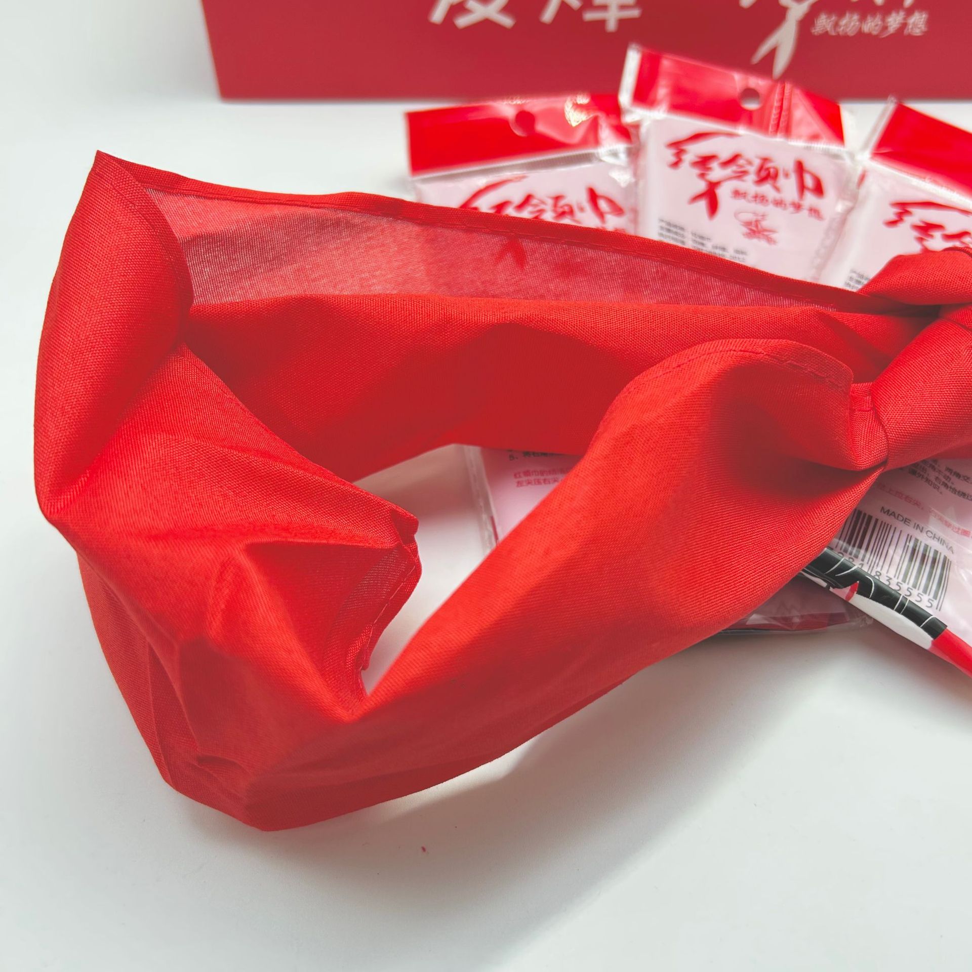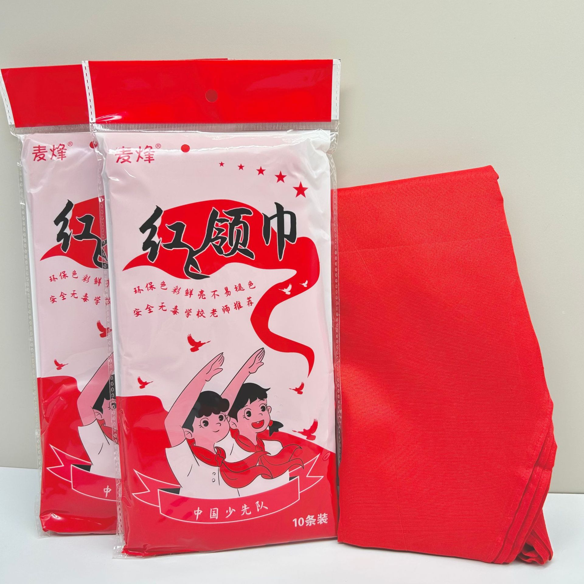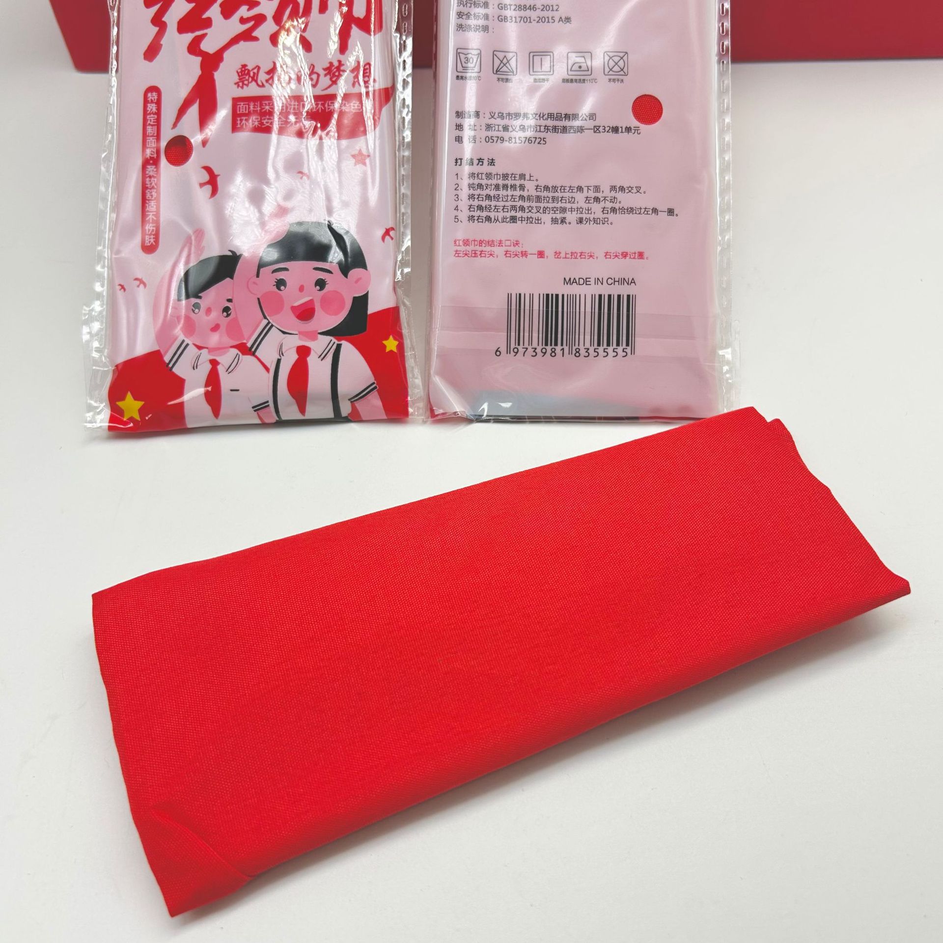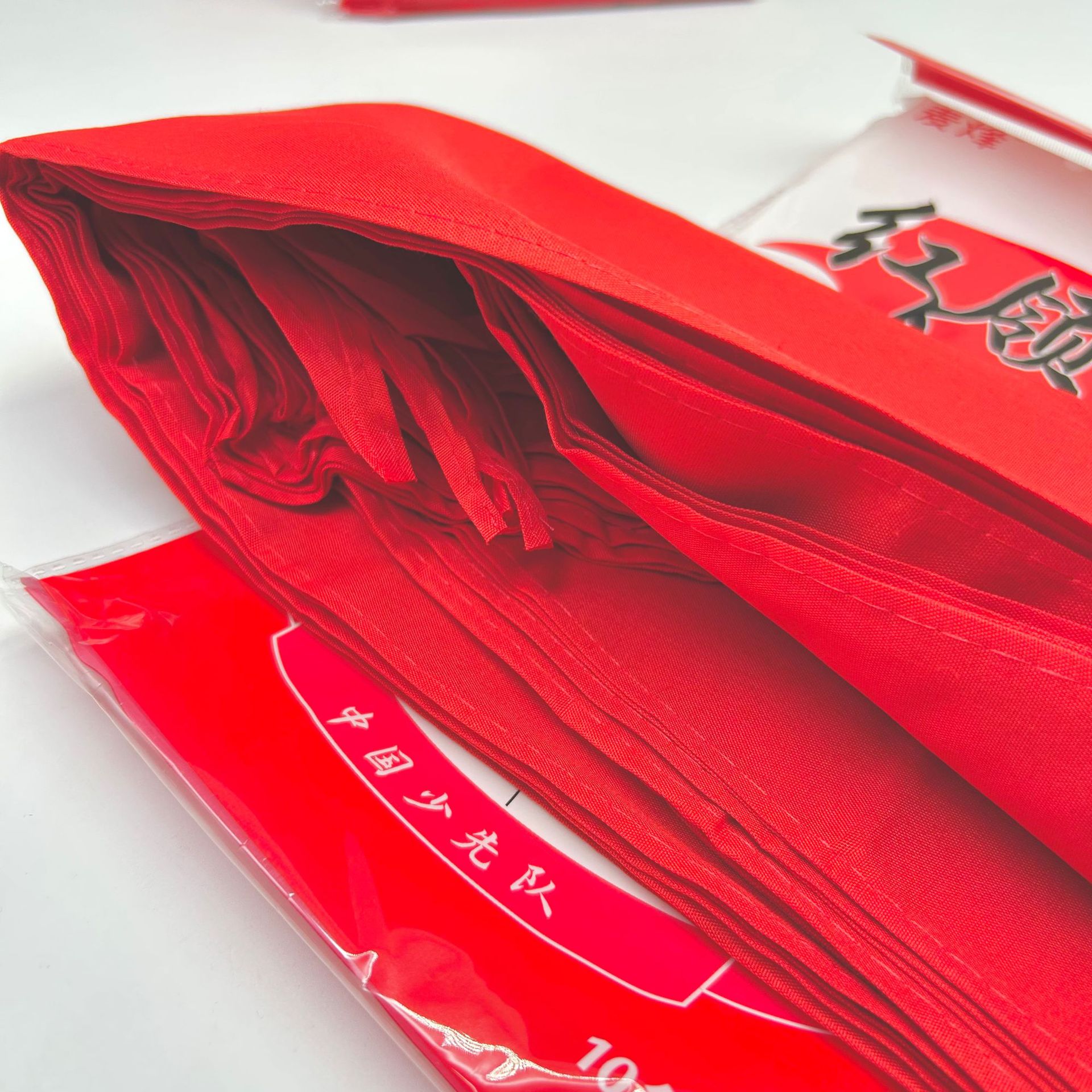 小学生向けの朝の光の赤いスカーフ、ポリエステル、ユニバーサル、色あせしない、1年生の厚い綿の標準的な赤いスカーフ卸売