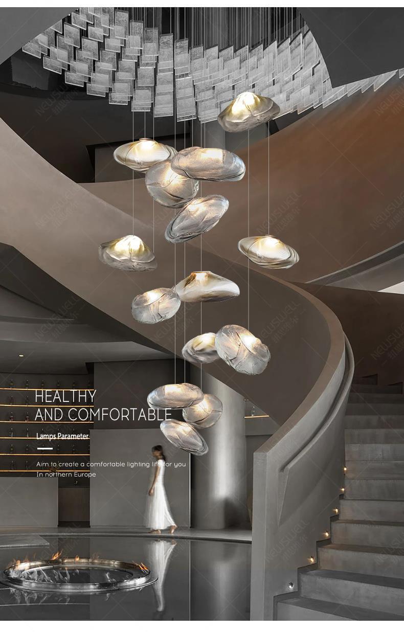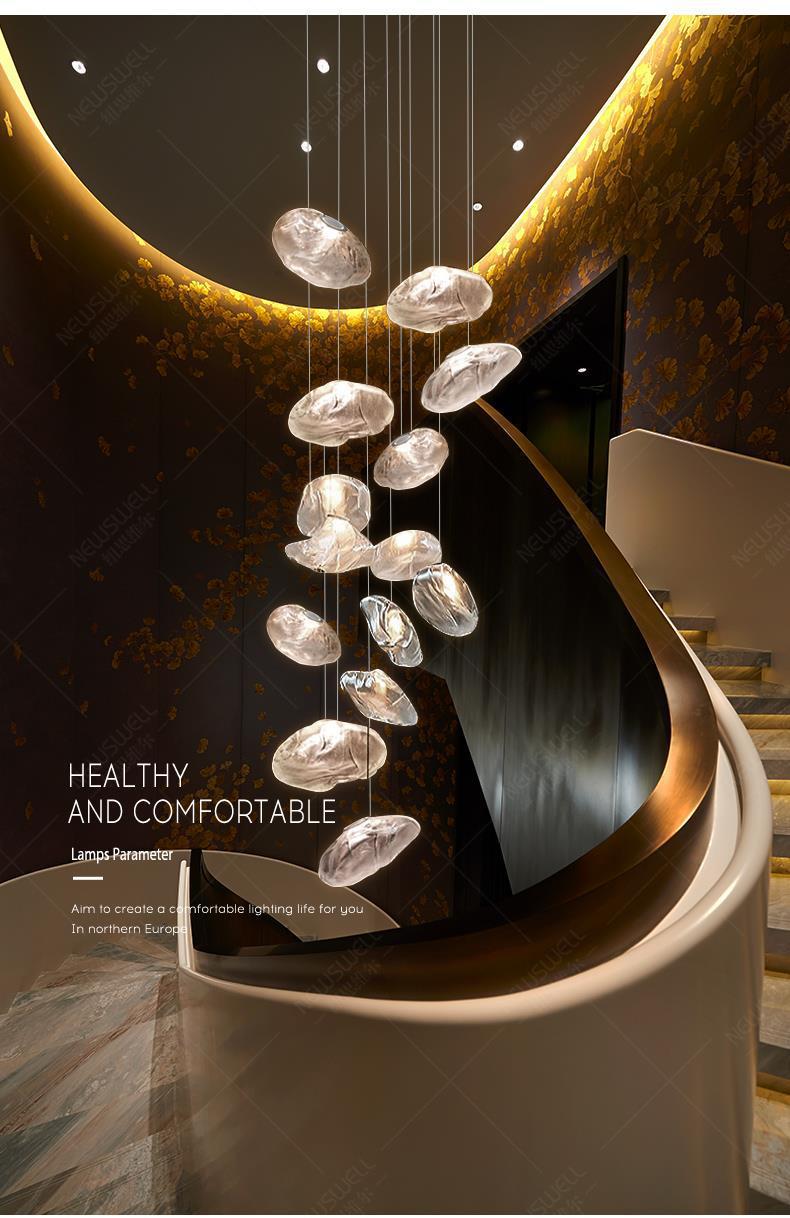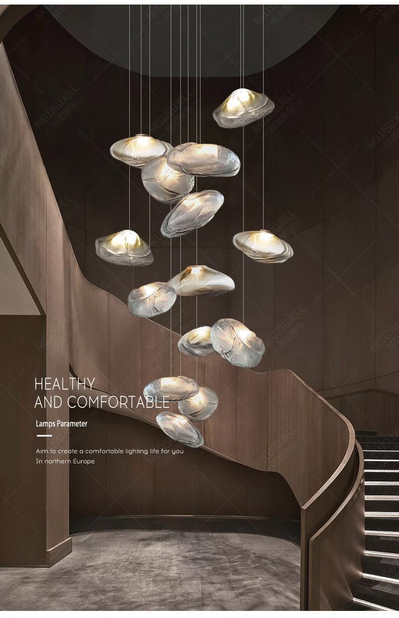 北欧设计师玻璃云朵灯复式楼别墅客厅楼梯间长吊灯饭店餐厅灯具