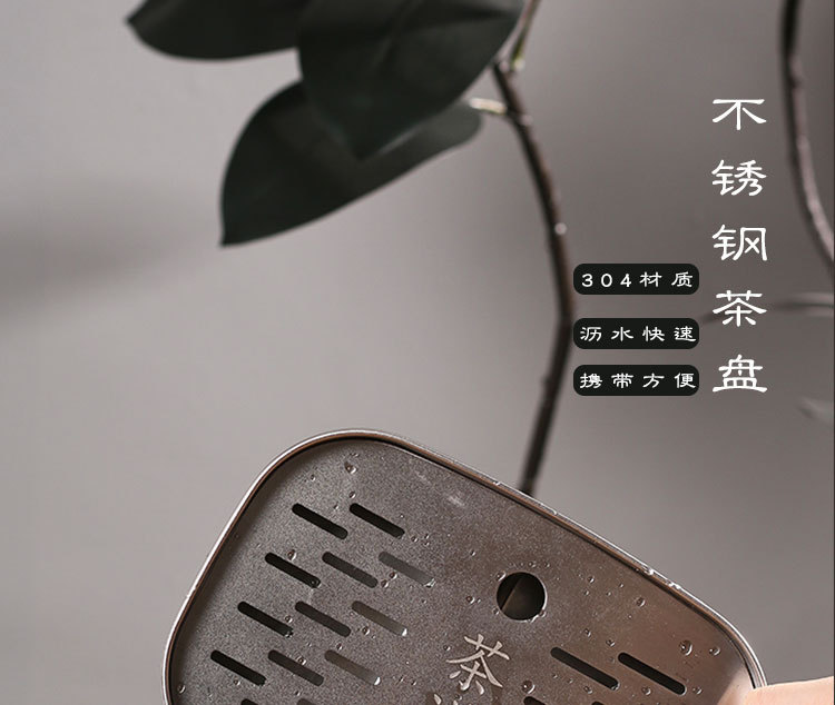 不锈钢茶盘便携沥水盘小茶盘茶具家用小茶台功夫户外储水沥水托盘