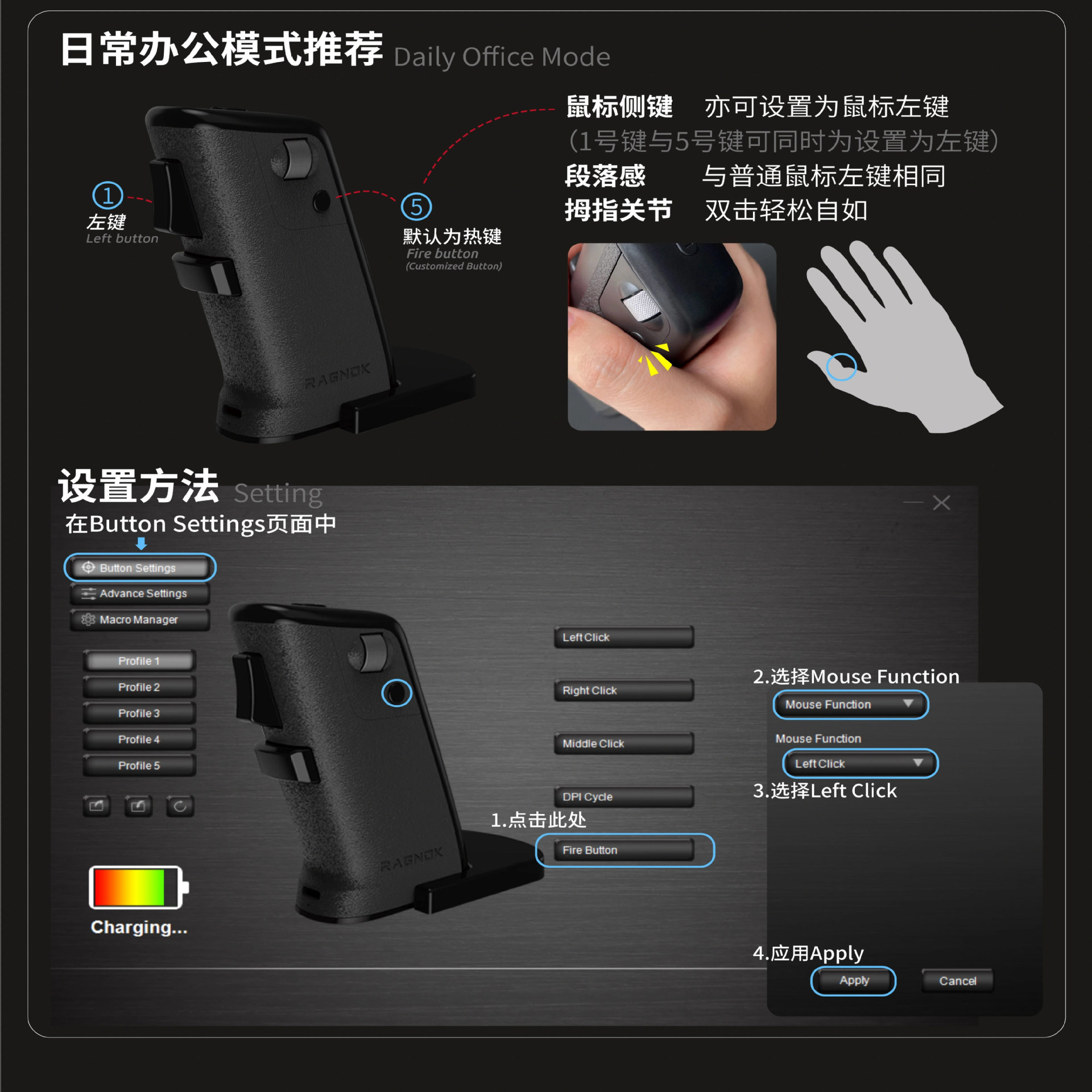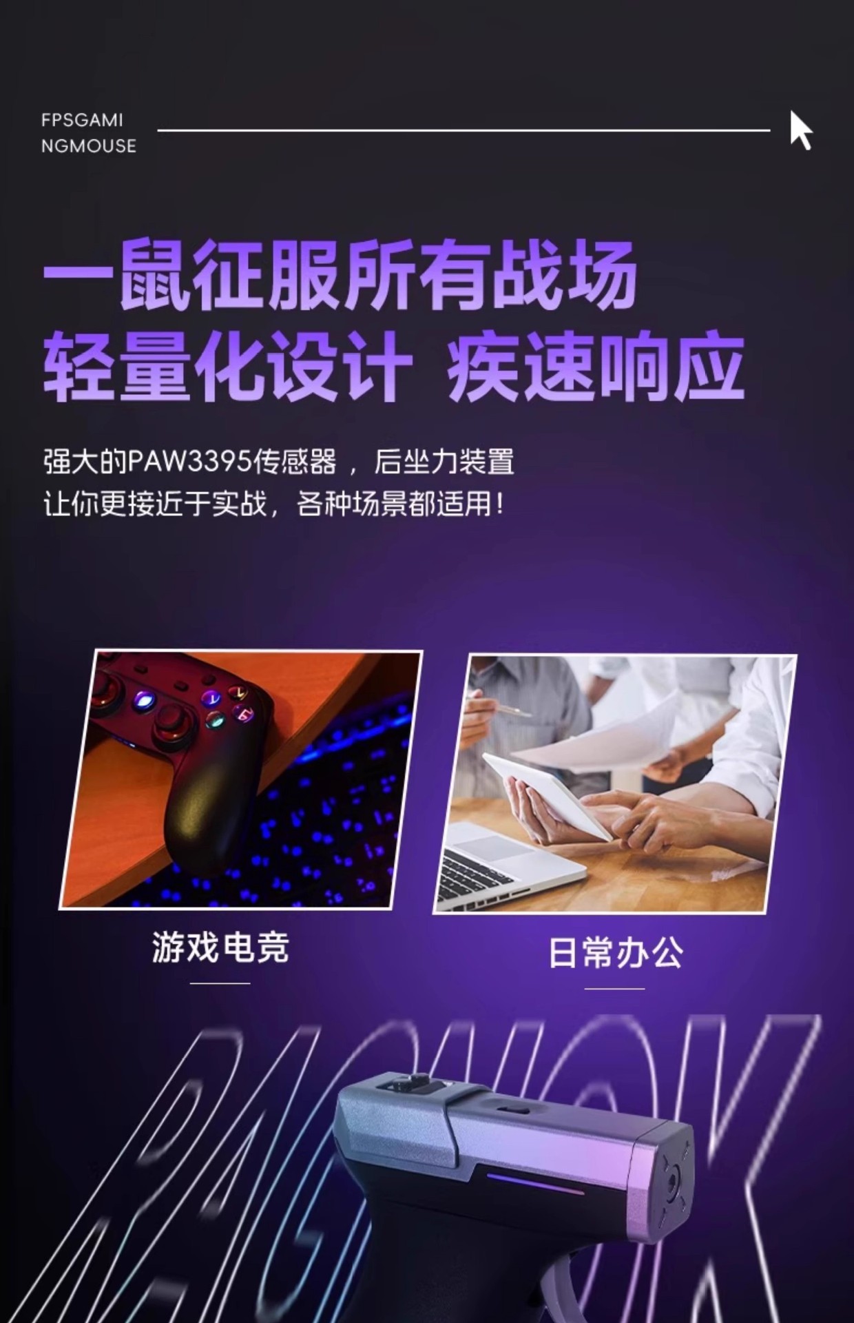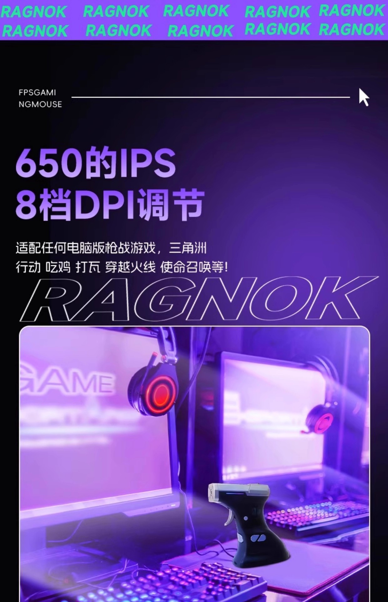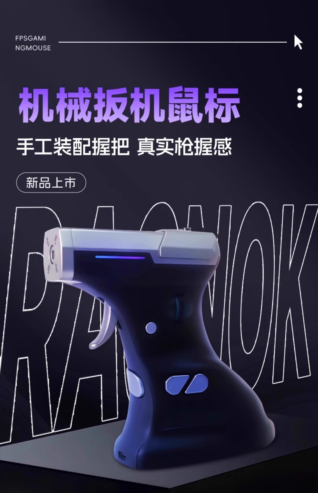 RAGNOK枪式鼠标射击游戏立式手柄握把扳机垂直鼠标外设枪型滑轮