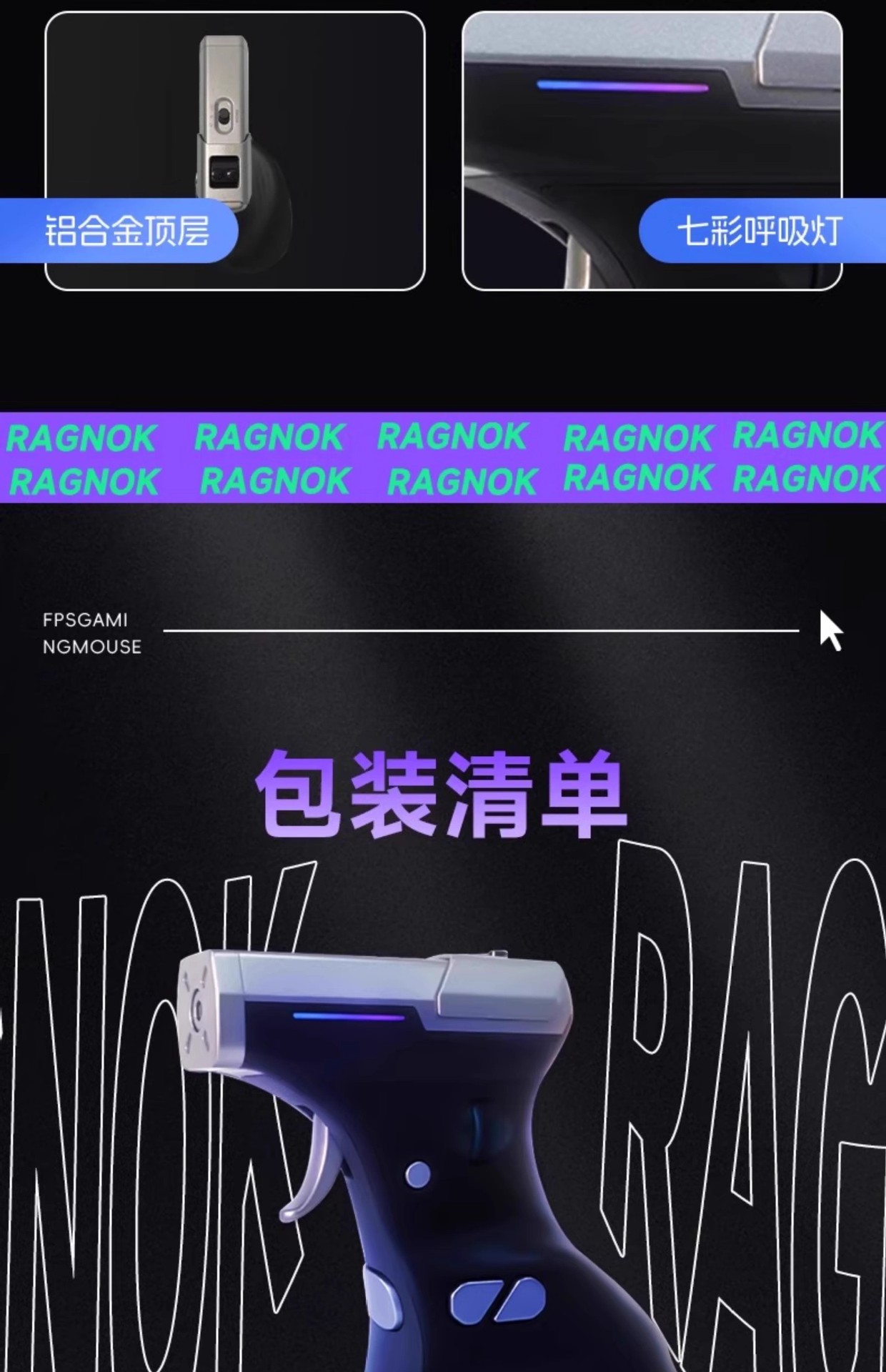 RAGNOK射击游戏鼠标震动枪型扳机后坐力黑轴充电双模立式护腕FPS