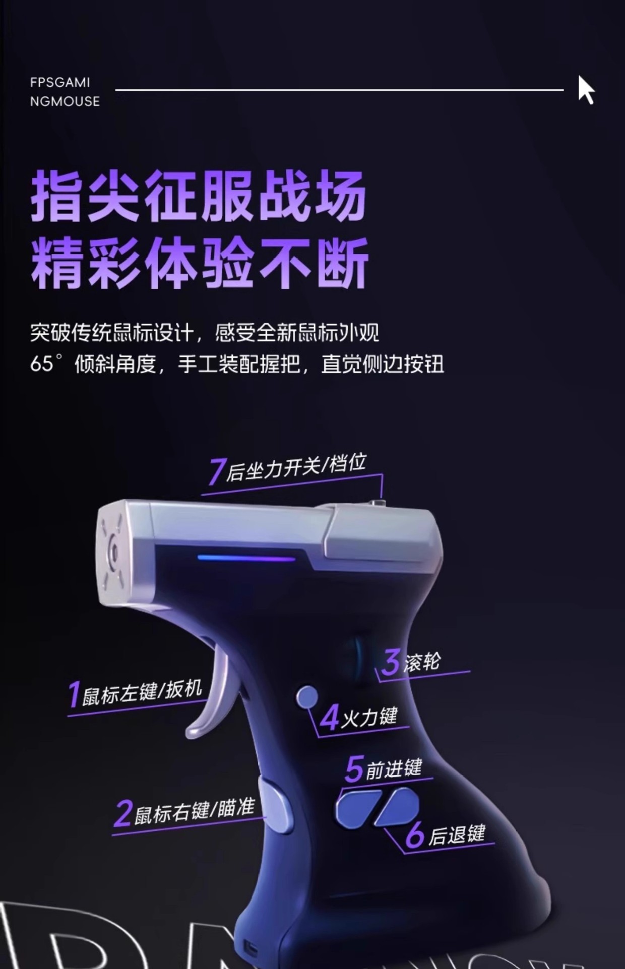 L25A枪式鼠标射击游戏立式手柄握把扳机手枪垂直有线外设枪型滑鼠