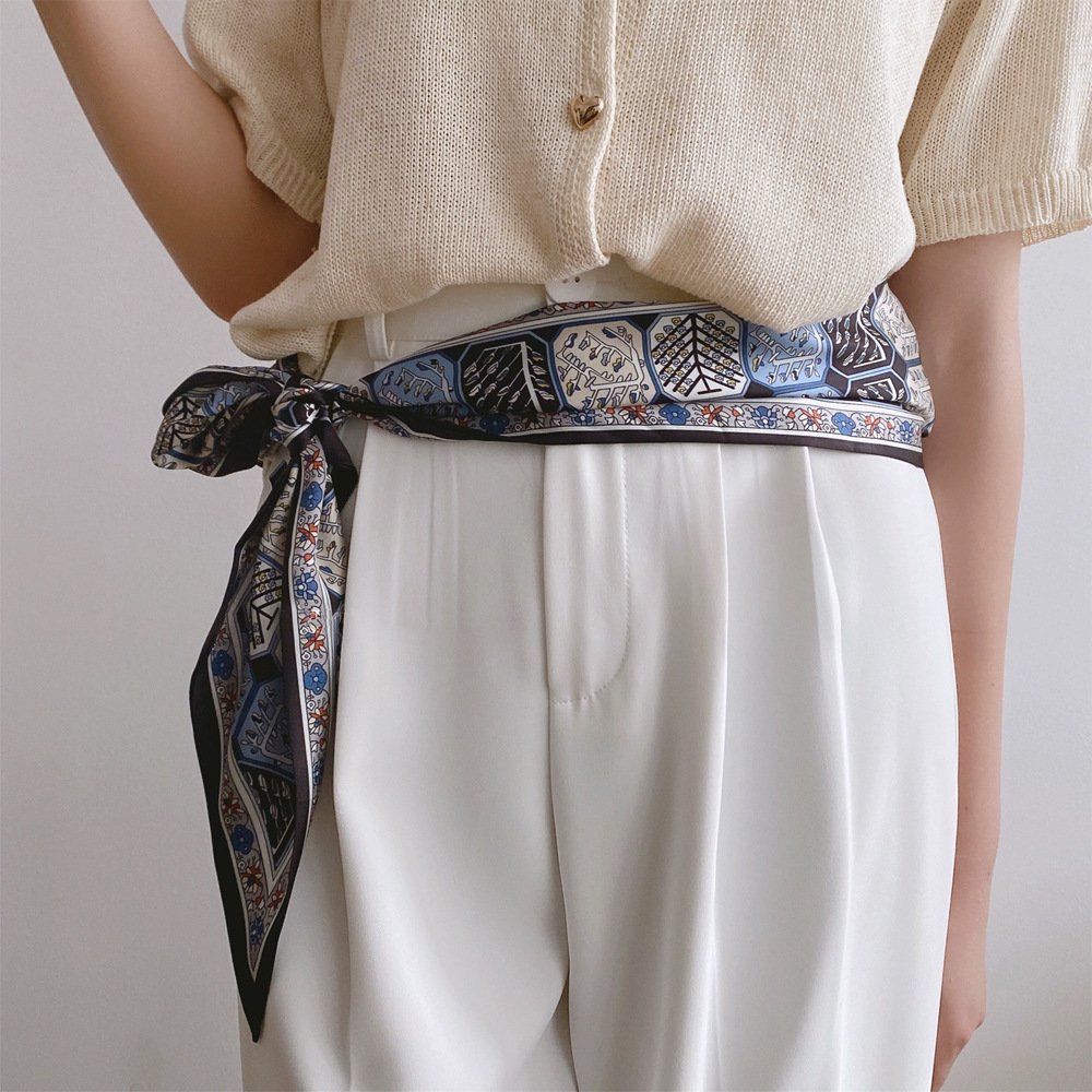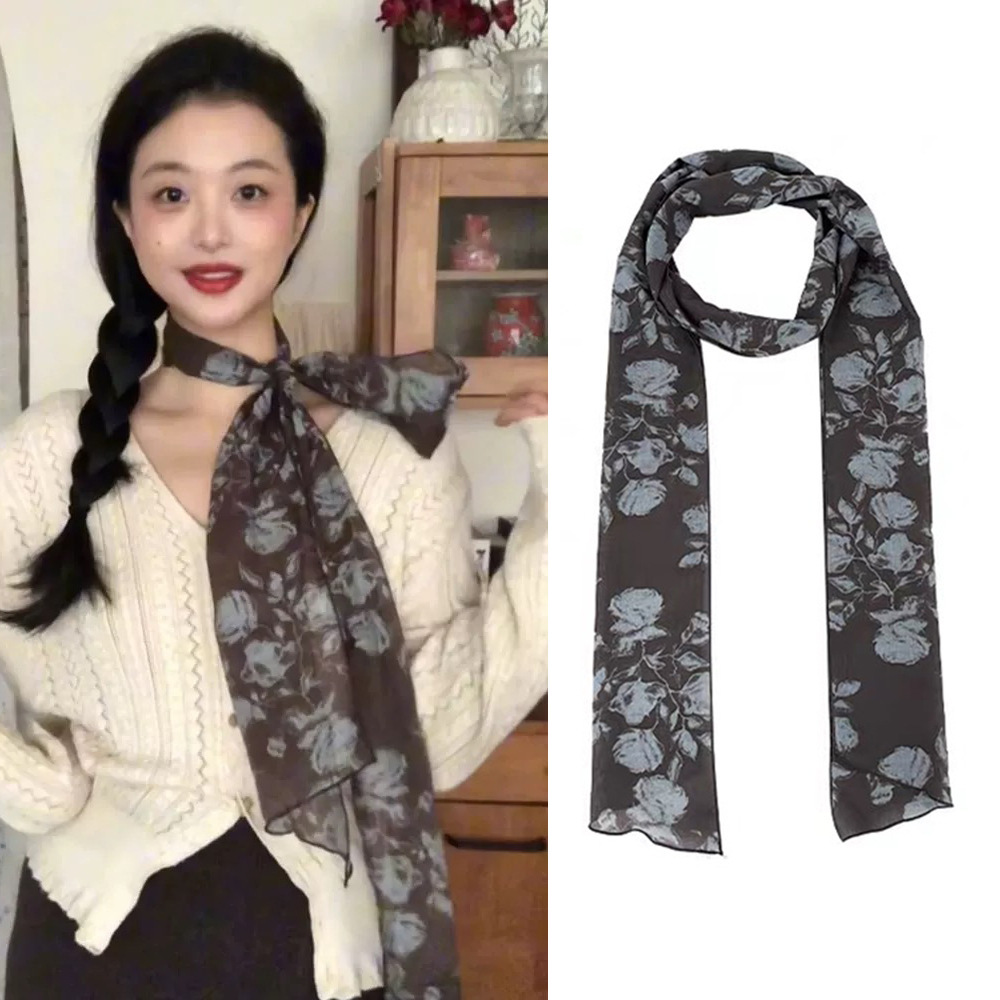 新款斜角小长条仿真丝丝巾女百搭春秋季发带围巾韩系领巾绑带飘带