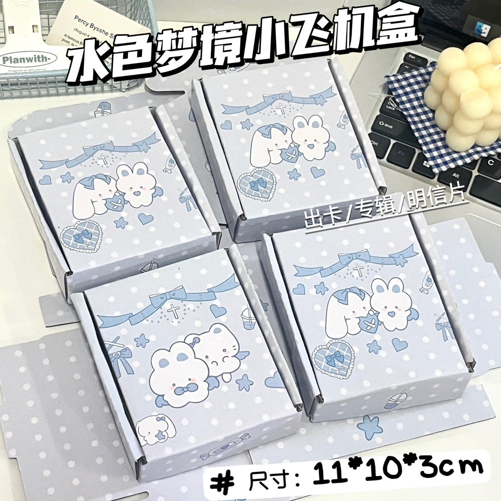 水色梦境小飞机盒高颜值卡通加厚盒子学生礼品盒子小卡收纳批发