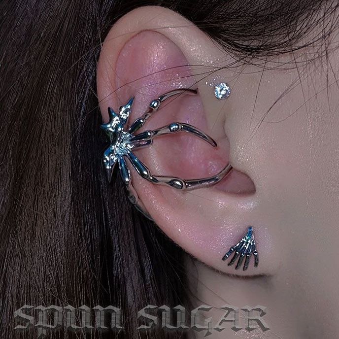沫戈跨境蜘蛛耳挂穿刺耳骨夹 暗黑小众高级感辣妹冷淡风 朋克耳饰
