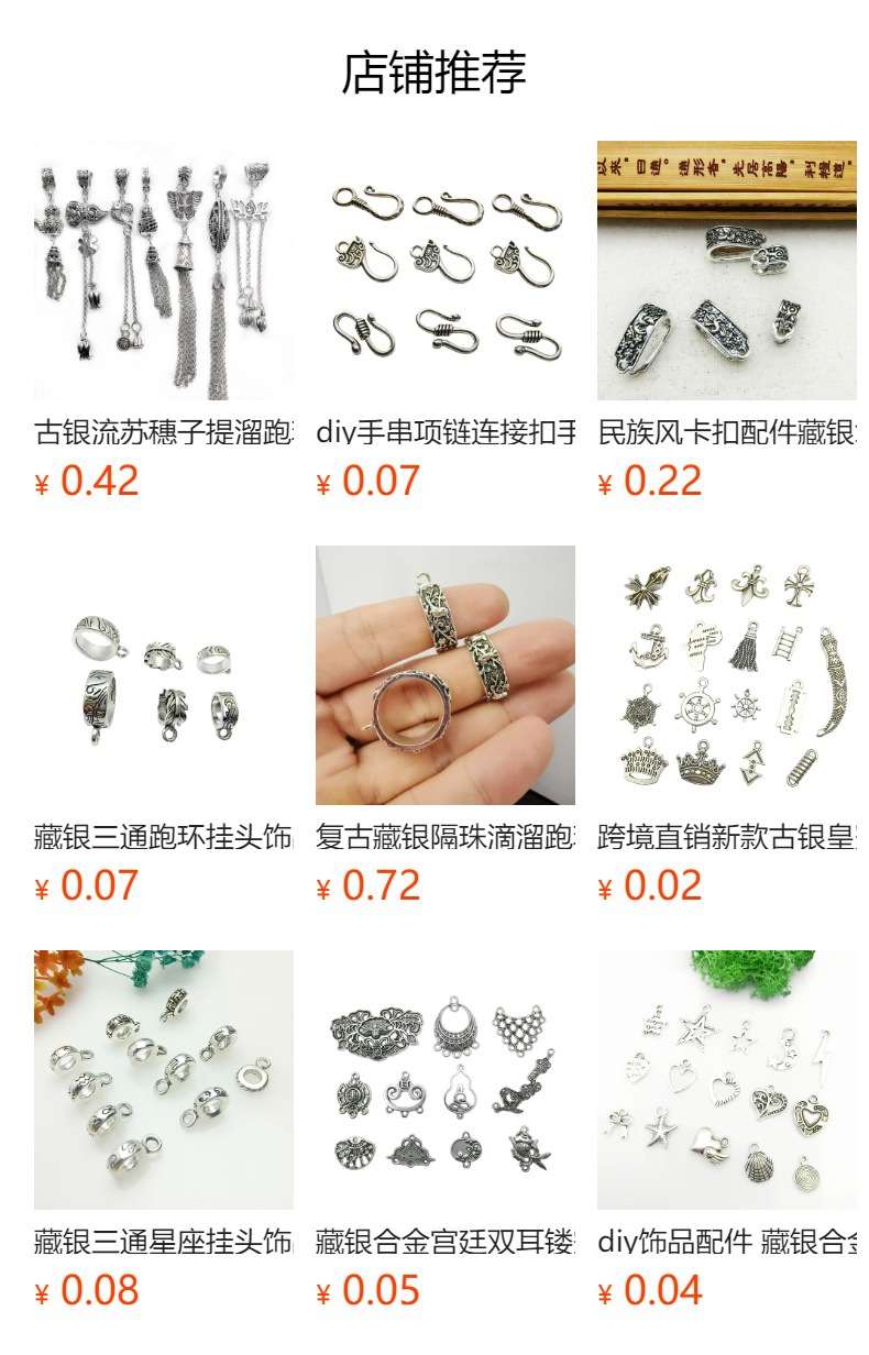 古银合金吊坠复古风莲花蝴蝶挂件diy水晶手链跑环流苏配件批发