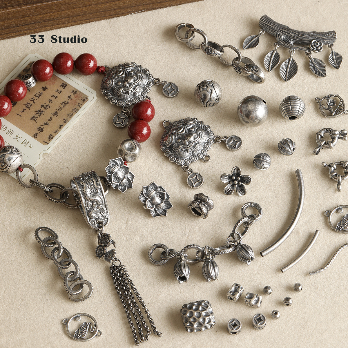 チエンマイ手作りdiyアクセサリーチベット銀レトロブレスレットネックレスビーズビーズ水晶手串アクセサリー材料