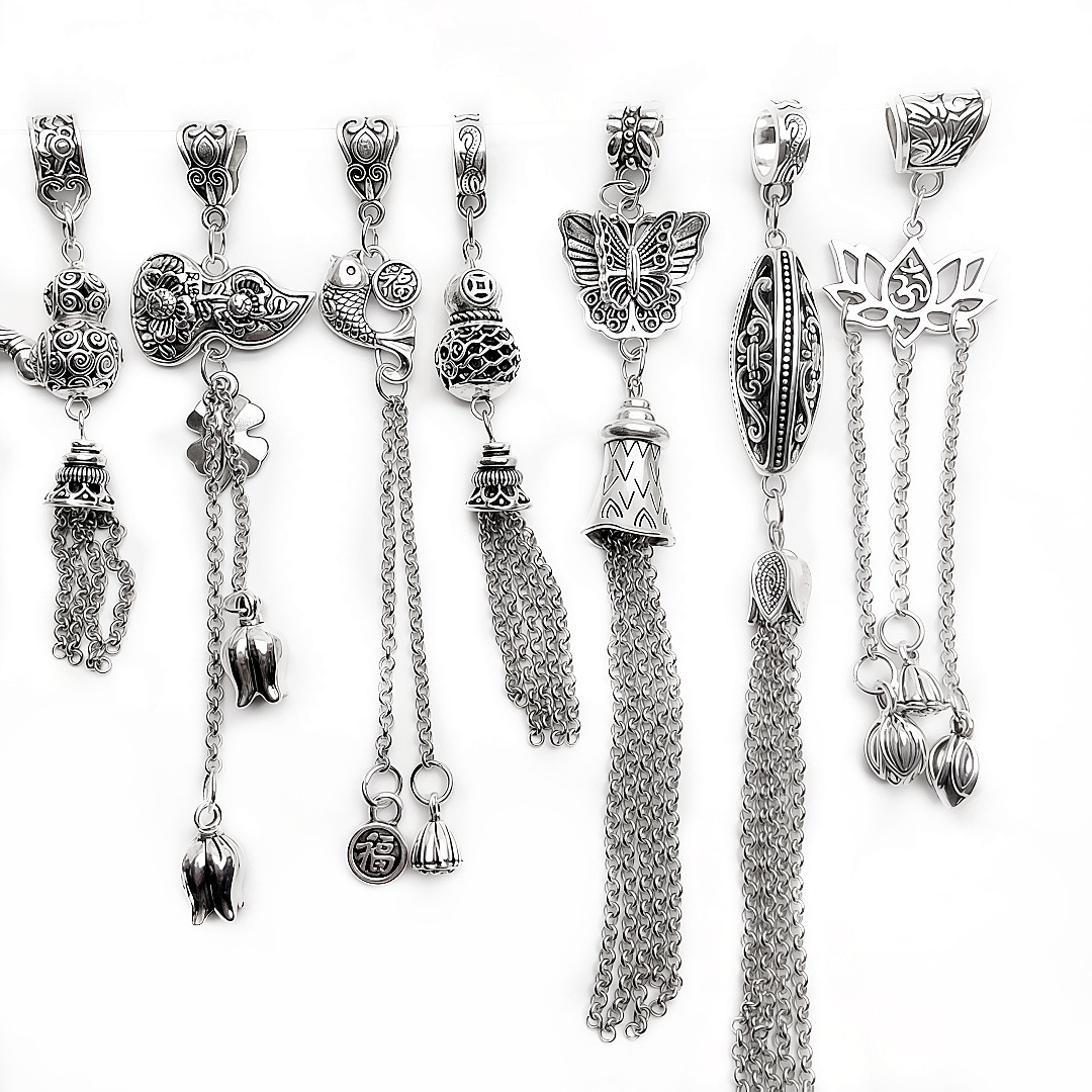 チベットシルバーヴィンテージそろばん猫貔貅マネーバッグ中空ひょうたん蝶タッセル DIY ネックレスセーターチェーンペンダント卸売