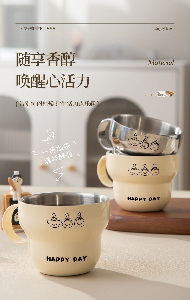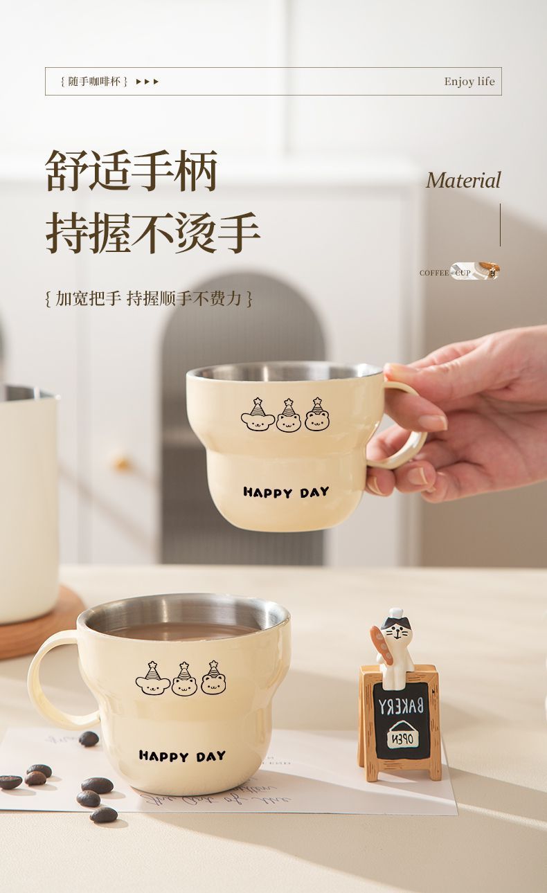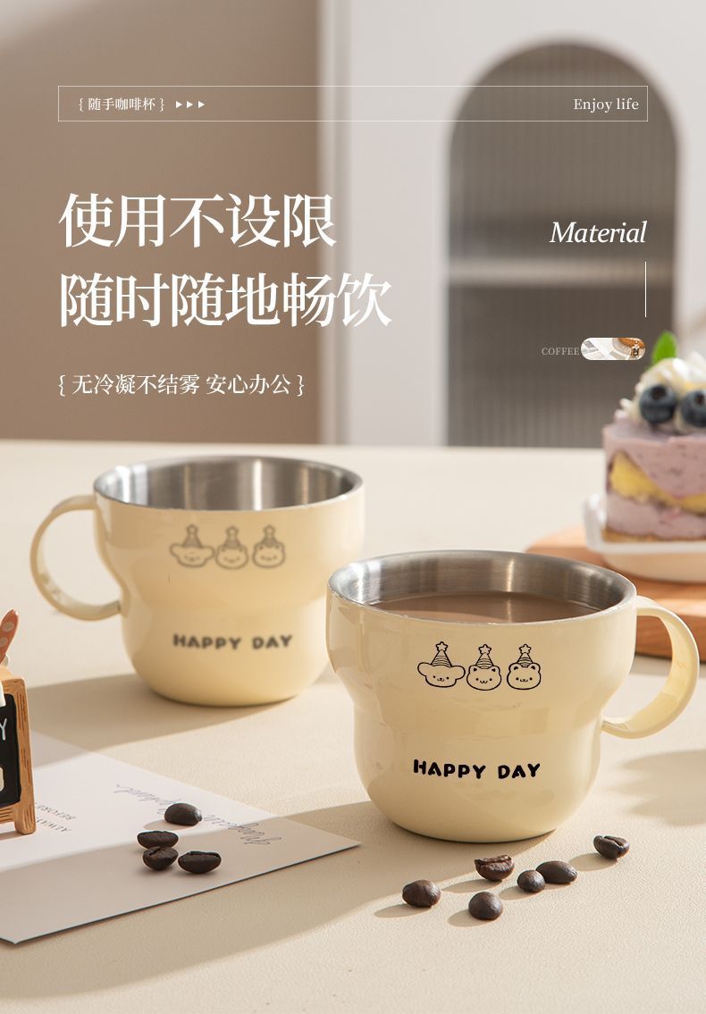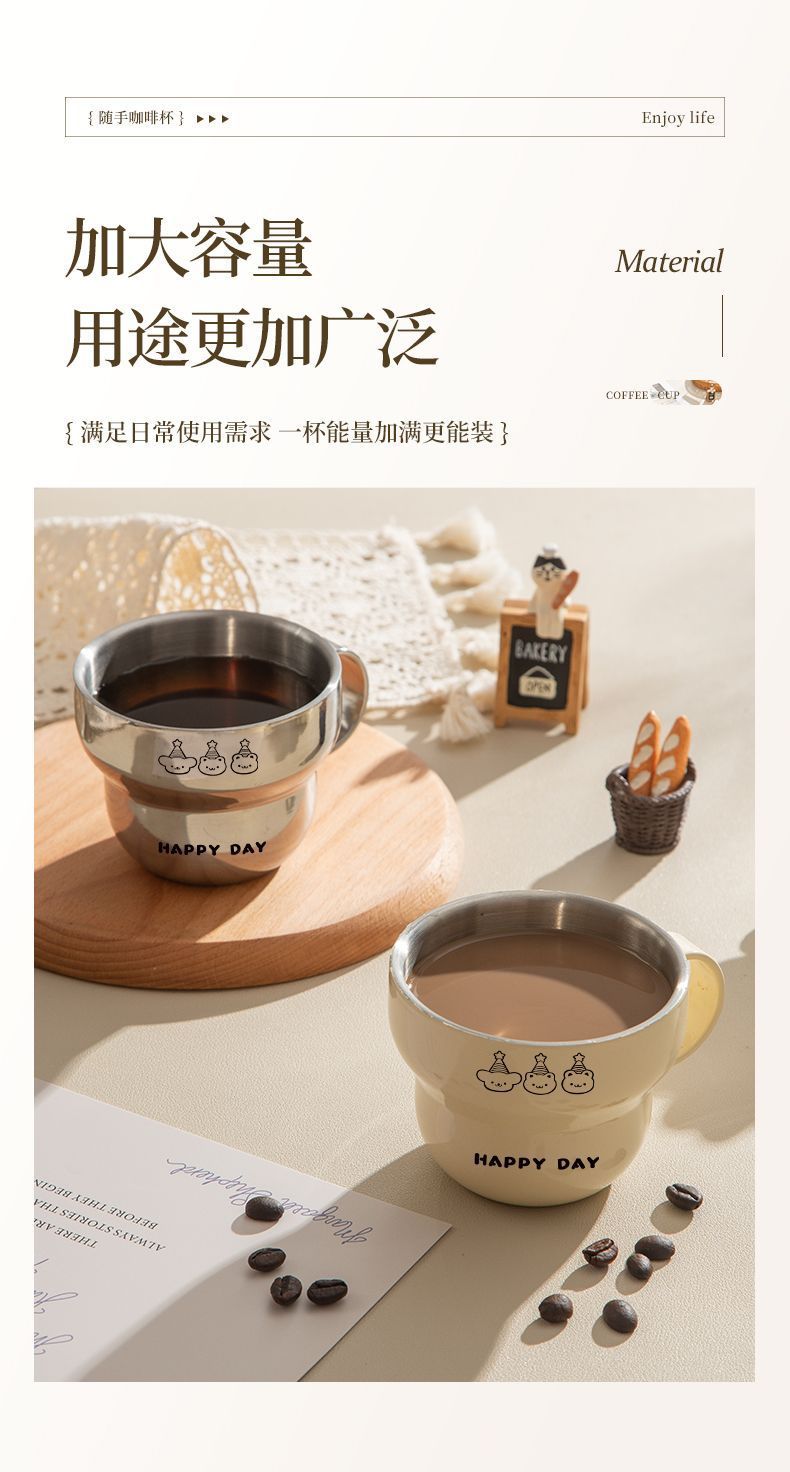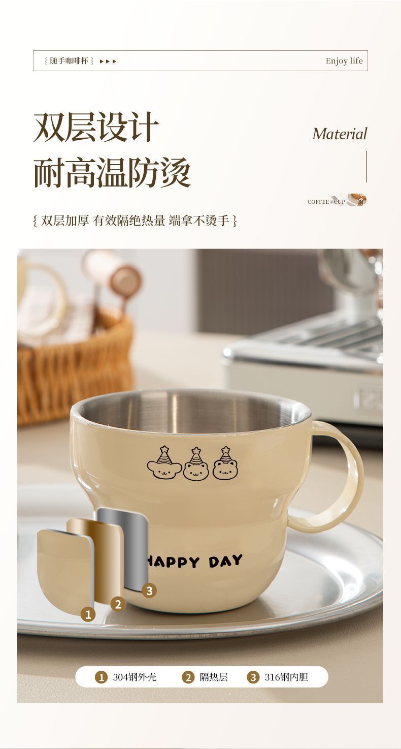 304不锈钢咖啡杯食品级家用卡通高颜值学生上班族便捷式饮水杯子