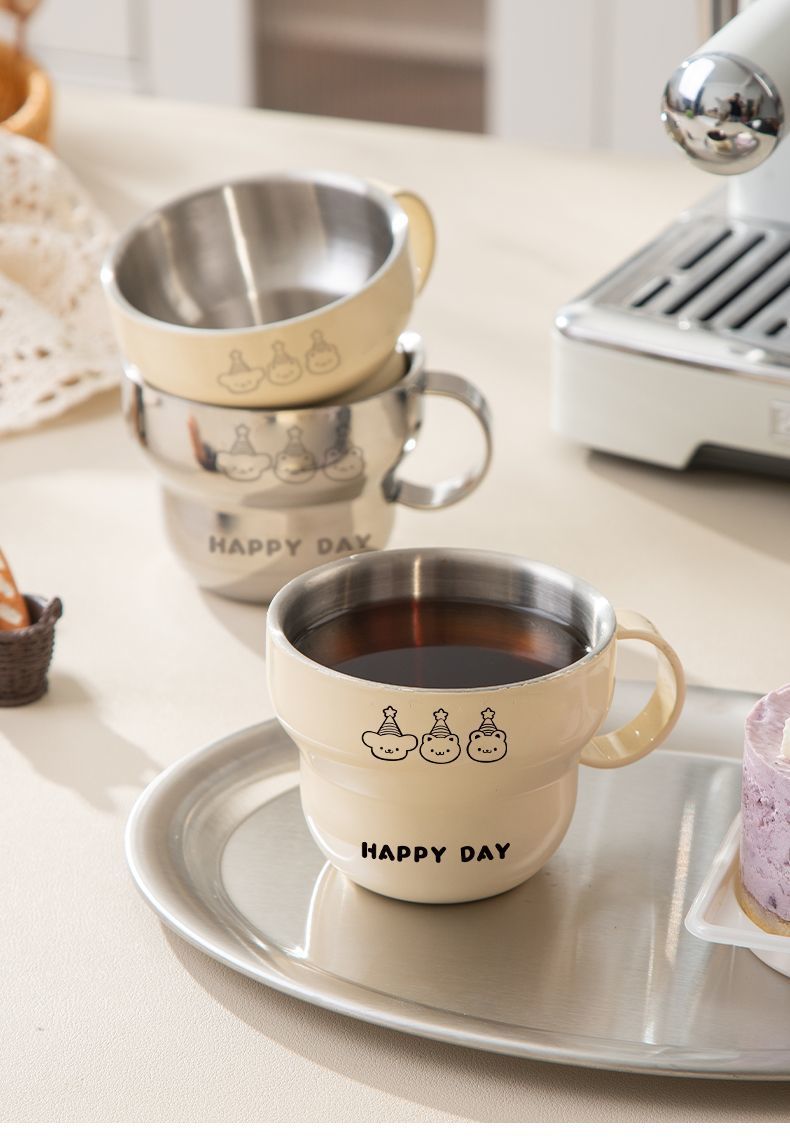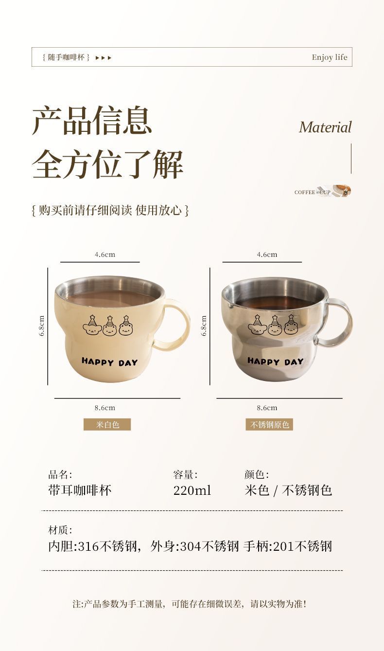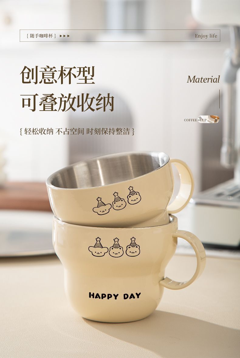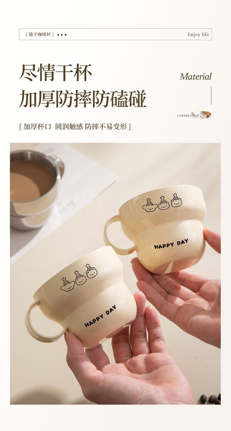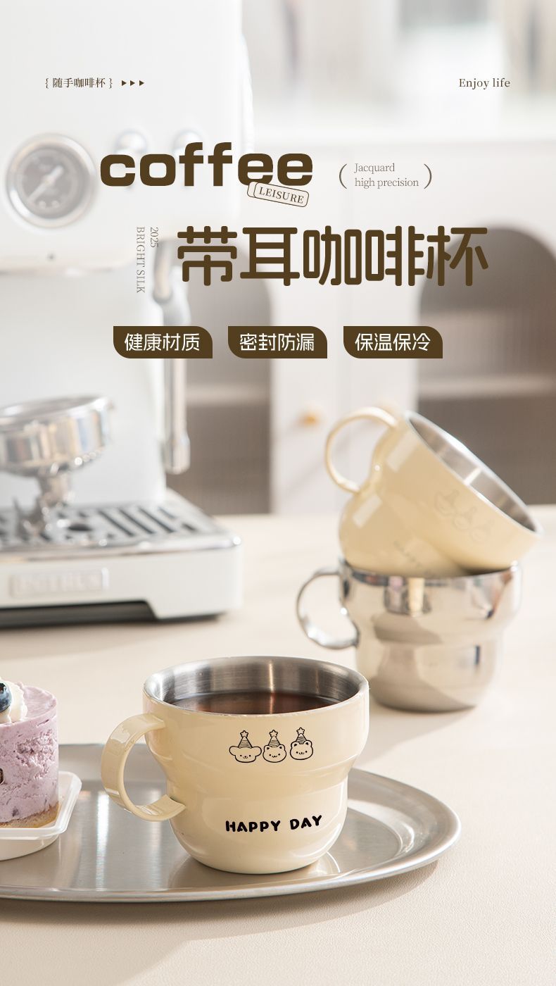304不锈钢咖啡杯食品级家用卡通高颜值学生上班族便捷式饮水杯子