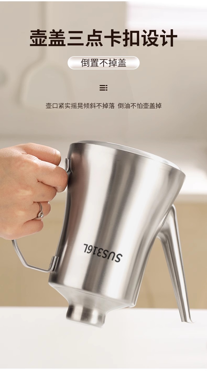 新款316食品级不锈钢油壶家用滤油壶厨房不挂油不漏油罐油瓶加厚