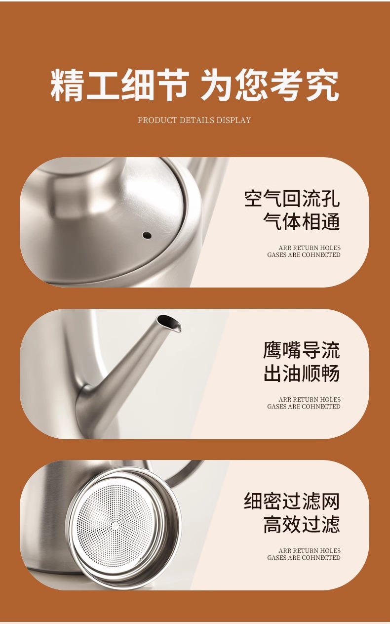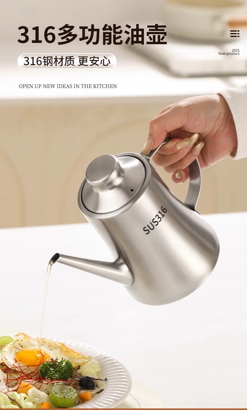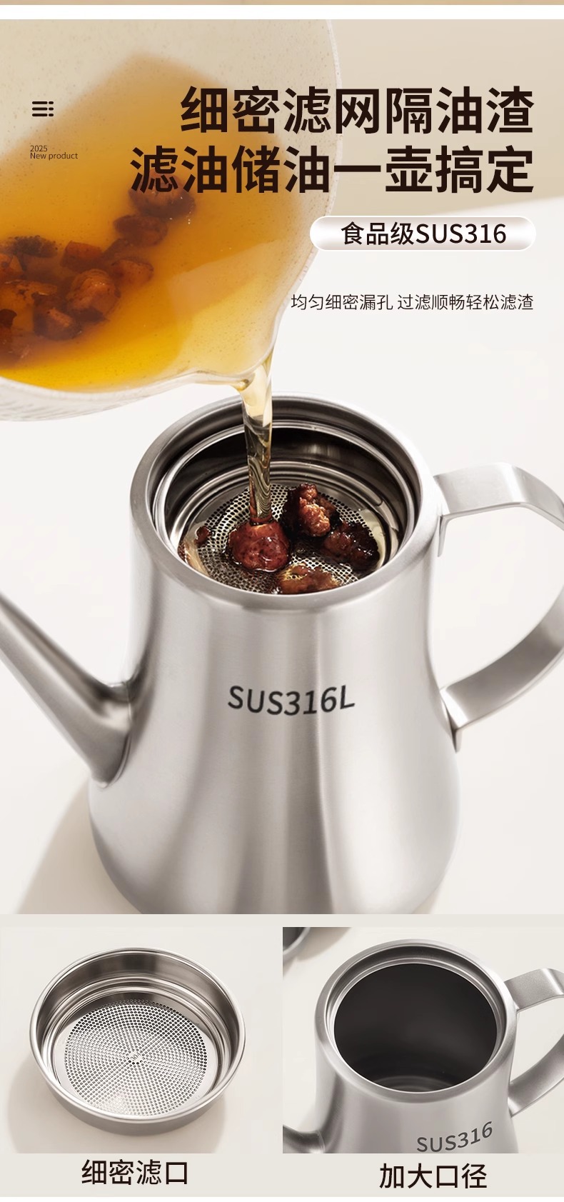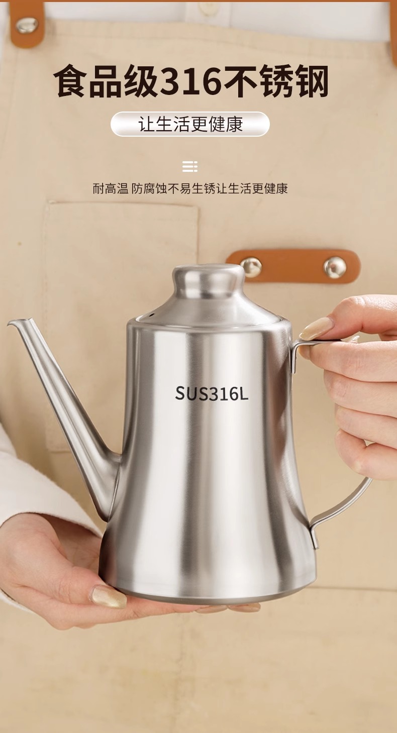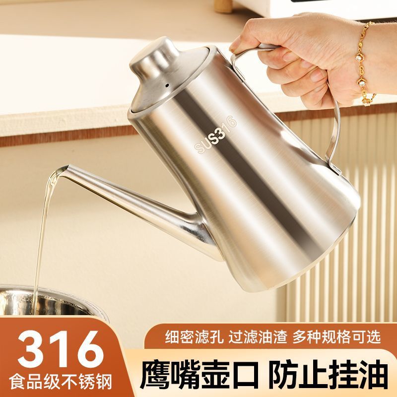 新款316油壶不锈钢特厚食品级加厚大容量滤鹰嘴不挂油