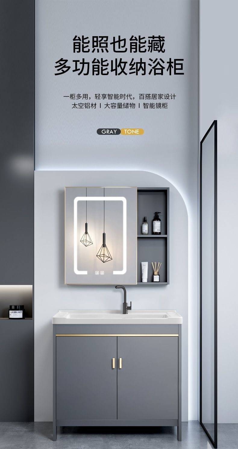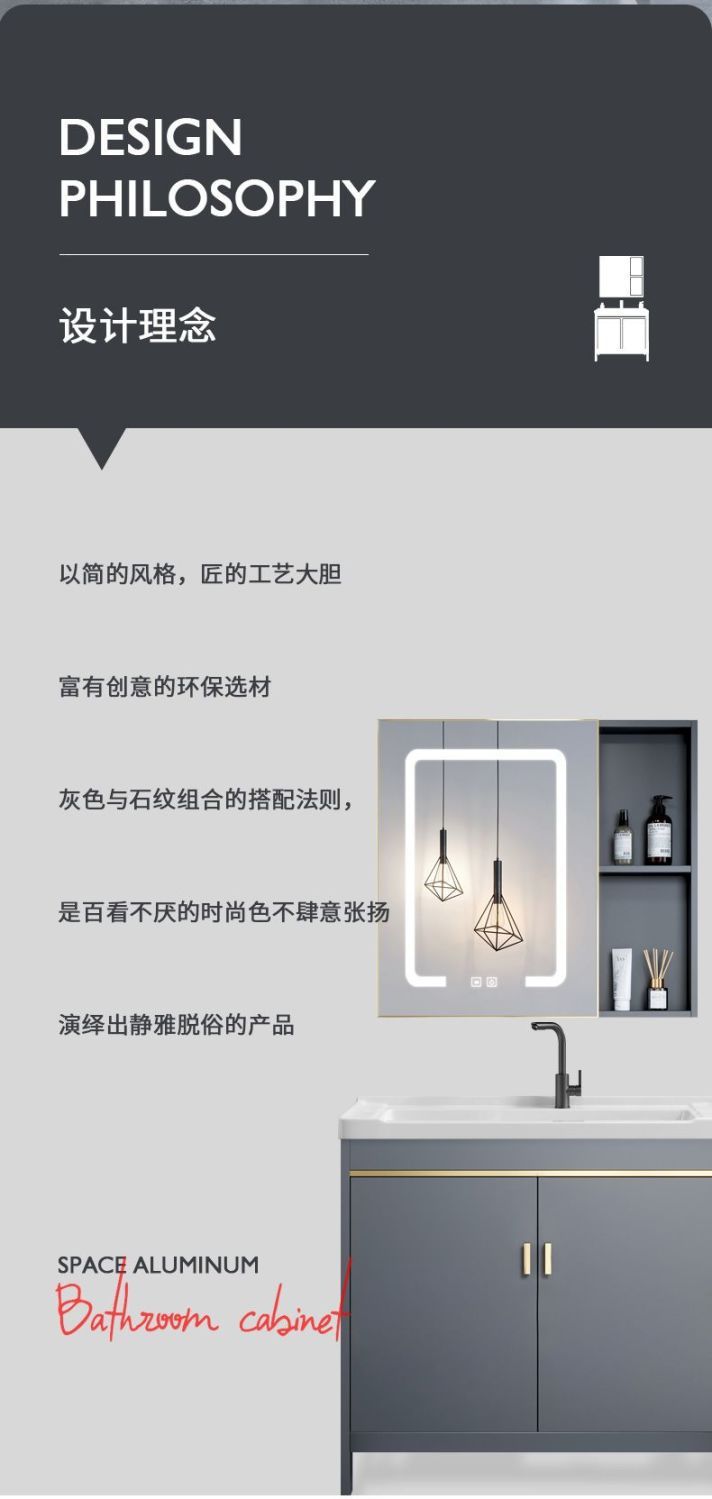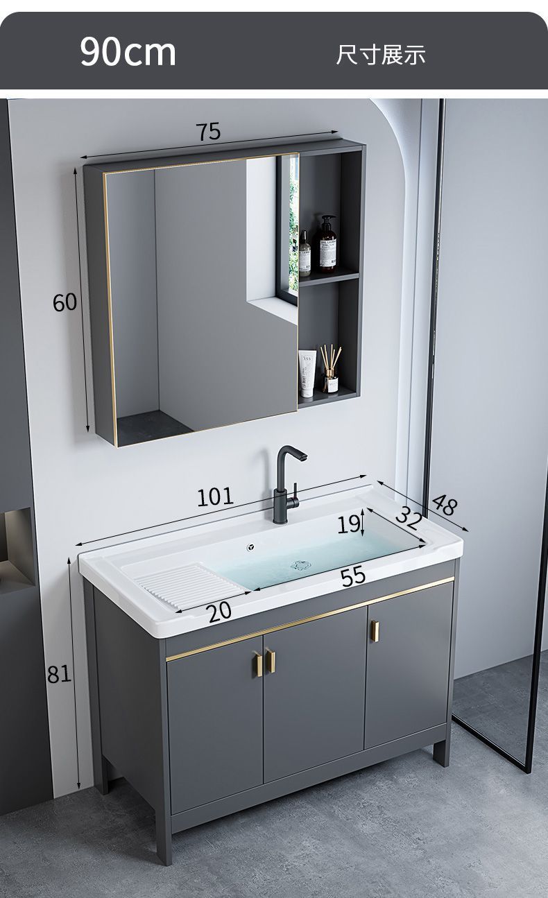 床置き型バスルームキャビネット組み合わせバスルーム洗面台セラミック一体型バルコニー洗面台スペースアルミ洗面台