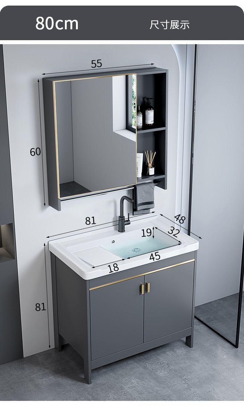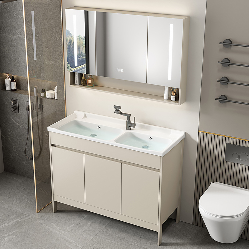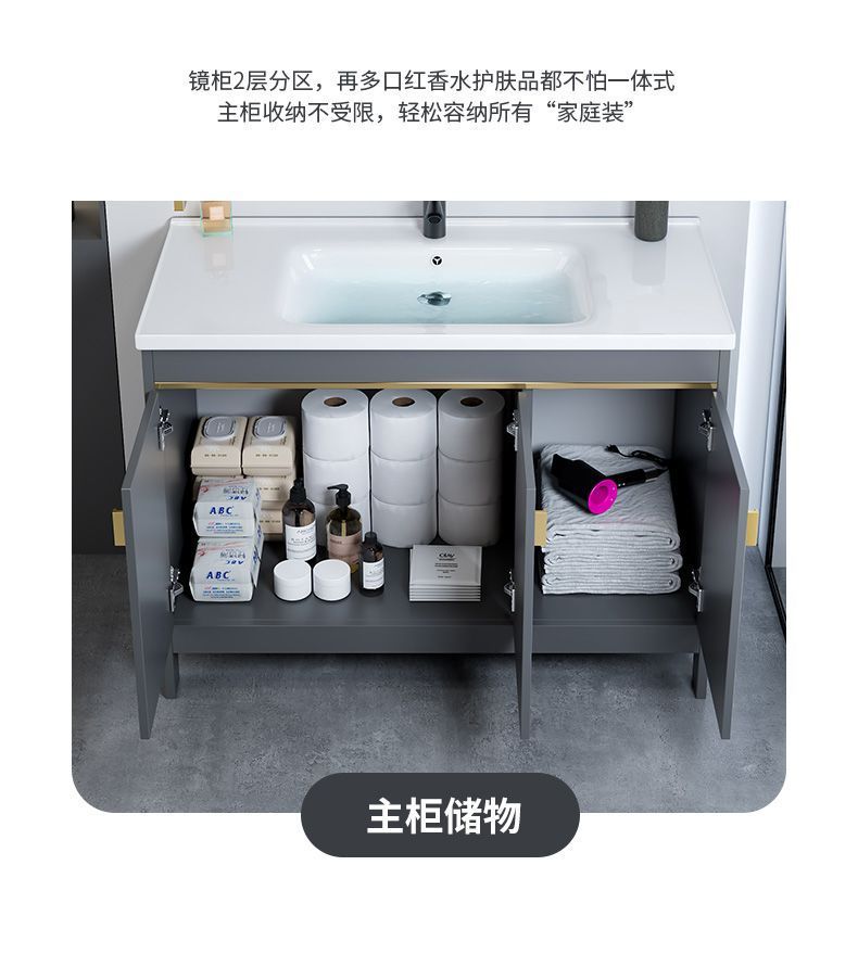 スペースアルミニウム床置き洗面台キャビネット組み合わせ洗面台カウンタートップ一体型洗面台浴室キャビネットセラミック一体型洗面台