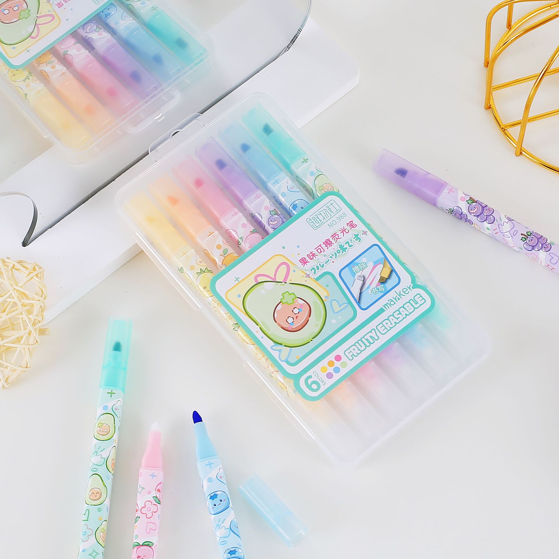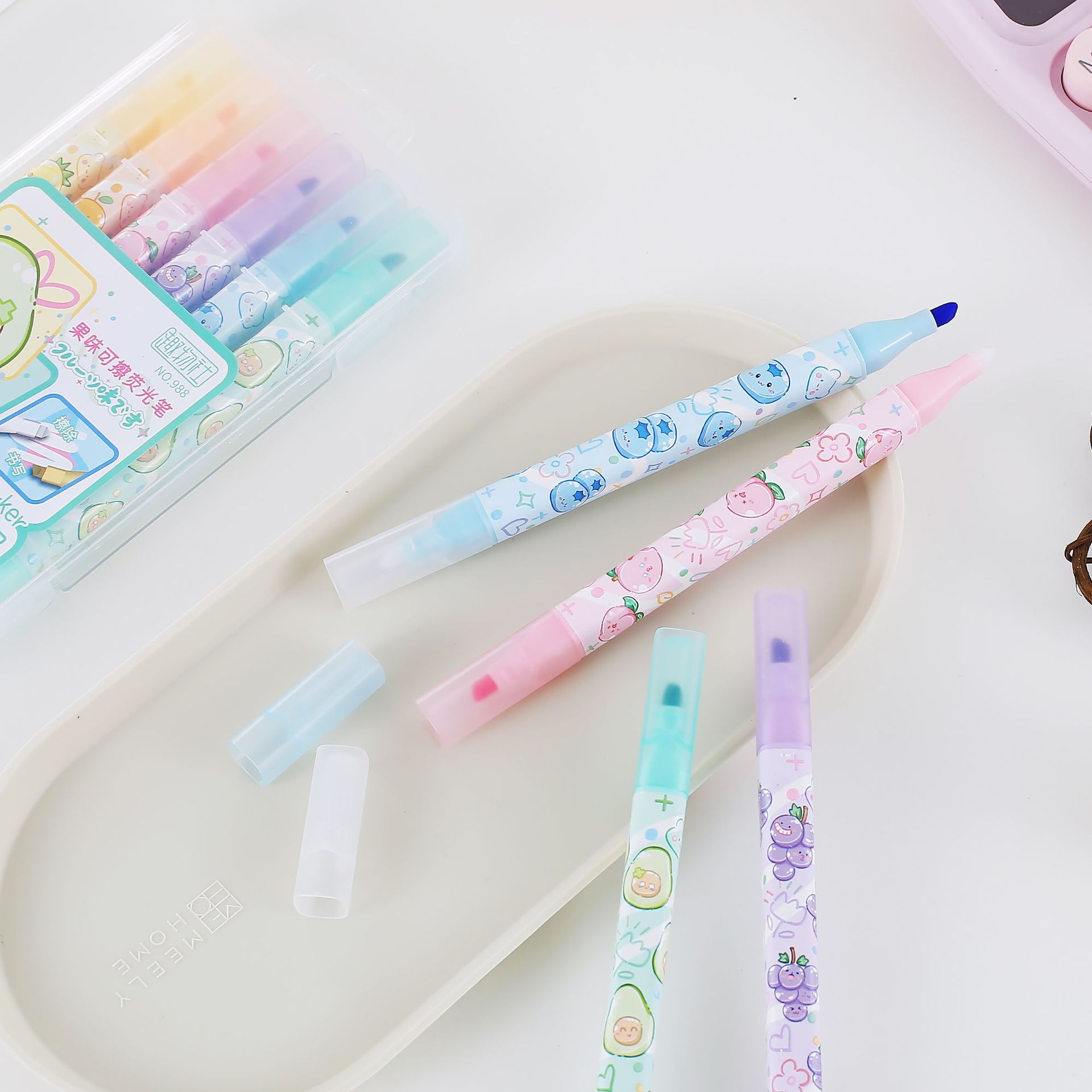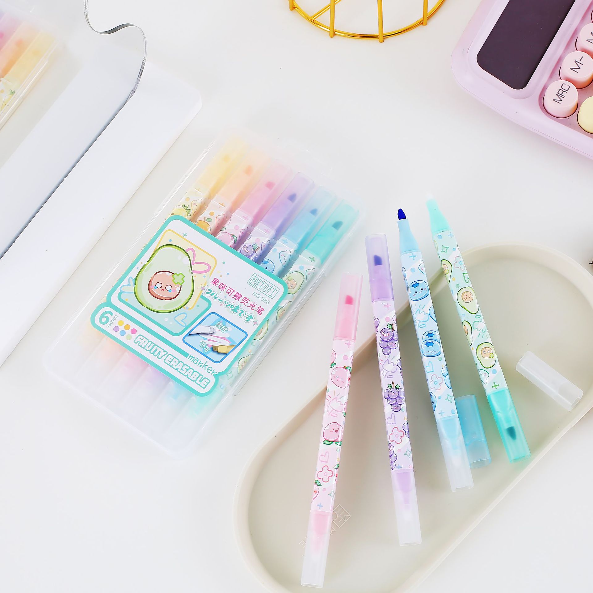 果味可擦荧光笔彩色涂鸦手账笔办公专用划重点标记水果香味荧光笔